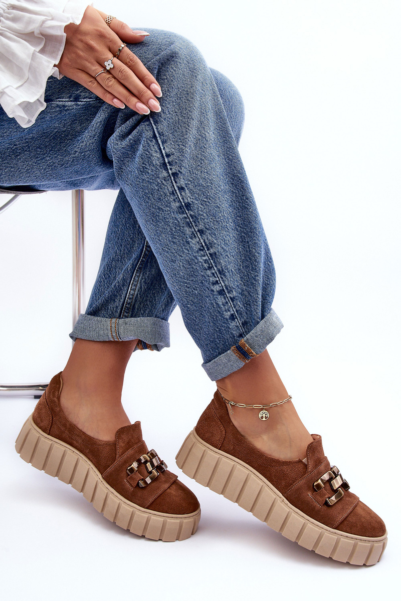 Dámske semišové topánky na platforme s dekoráciou Brown Lewski 3398