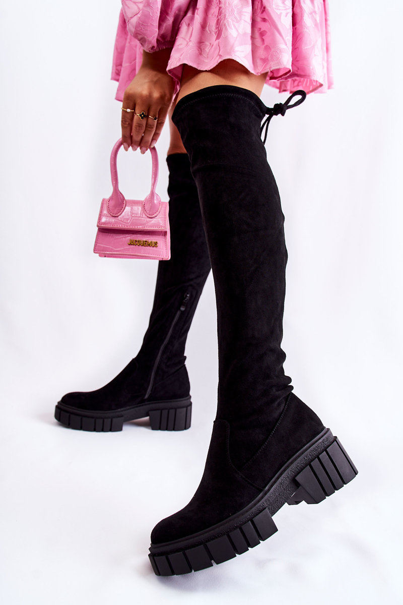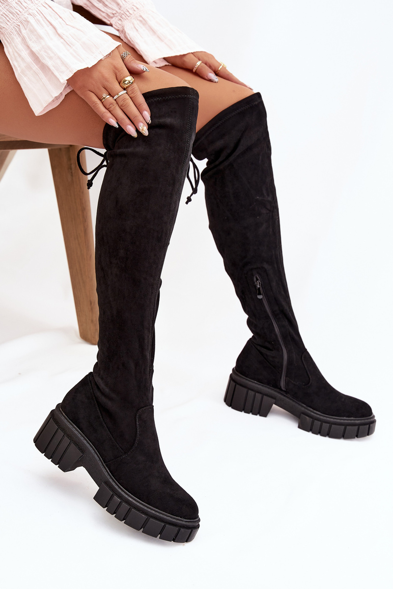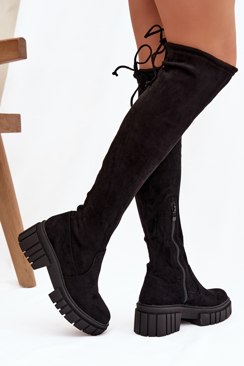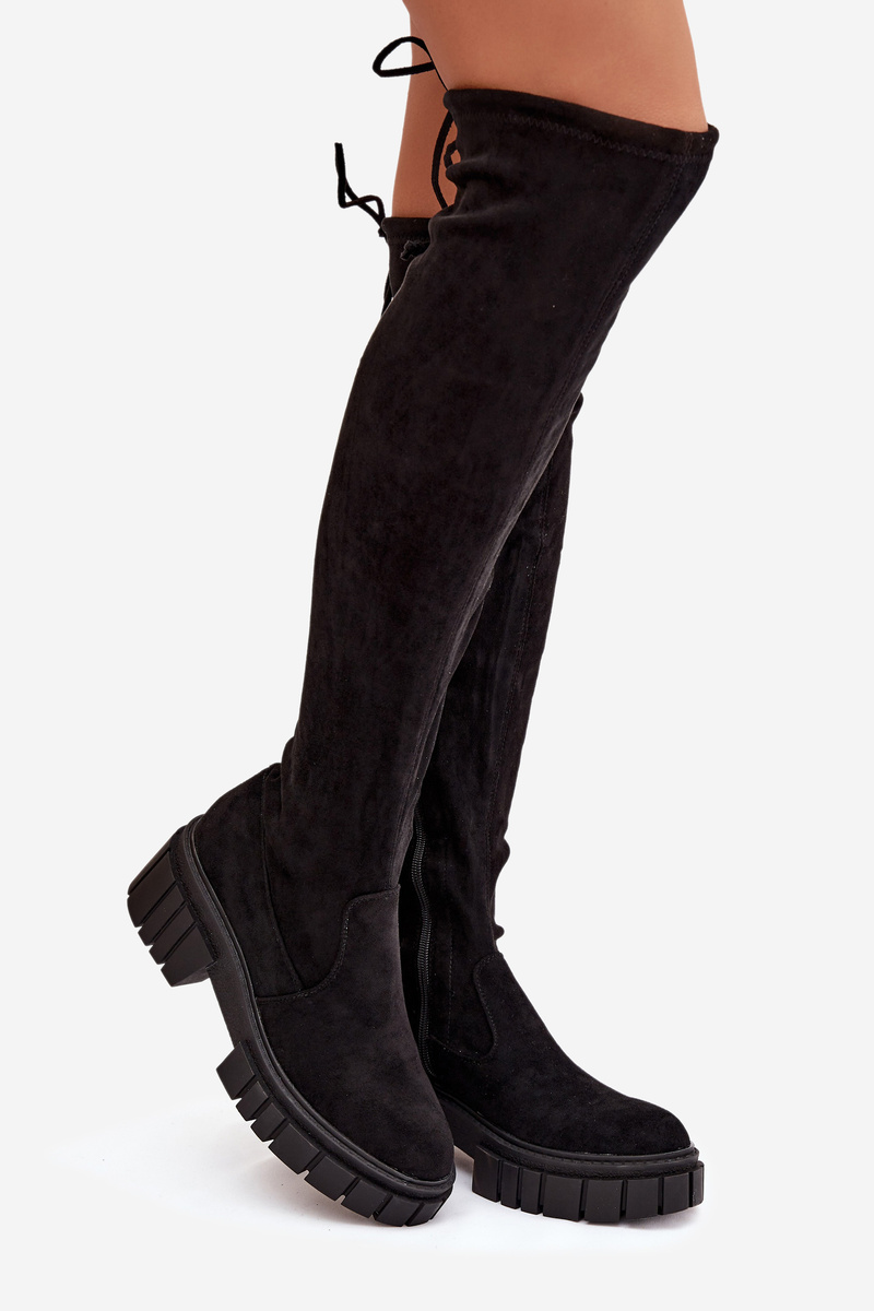 Dámske semišové topánky nad kolennou čiernou cheerou