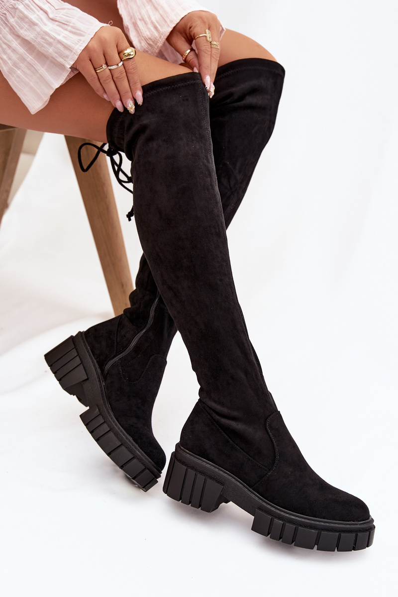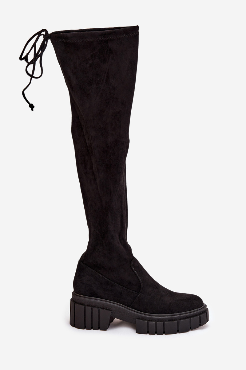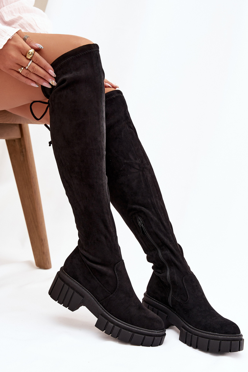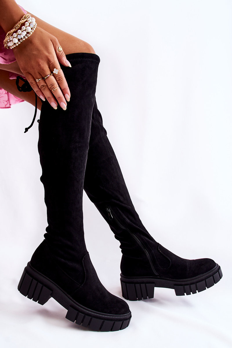 Dámske semišové topánky nad kolennou čiernou cheerou
