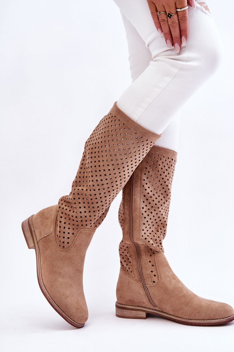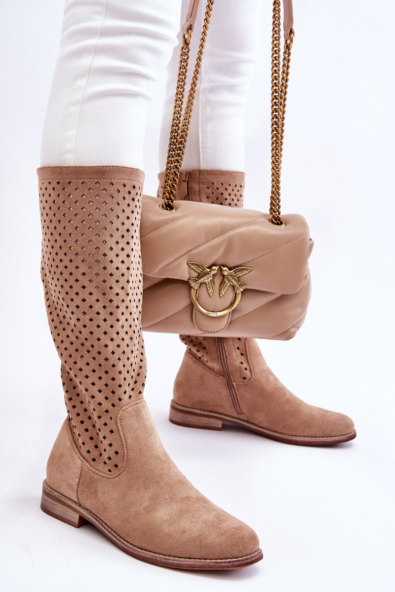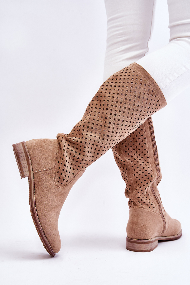 Dámske semišové topánky Openwork pred kolennou béžou Savannah