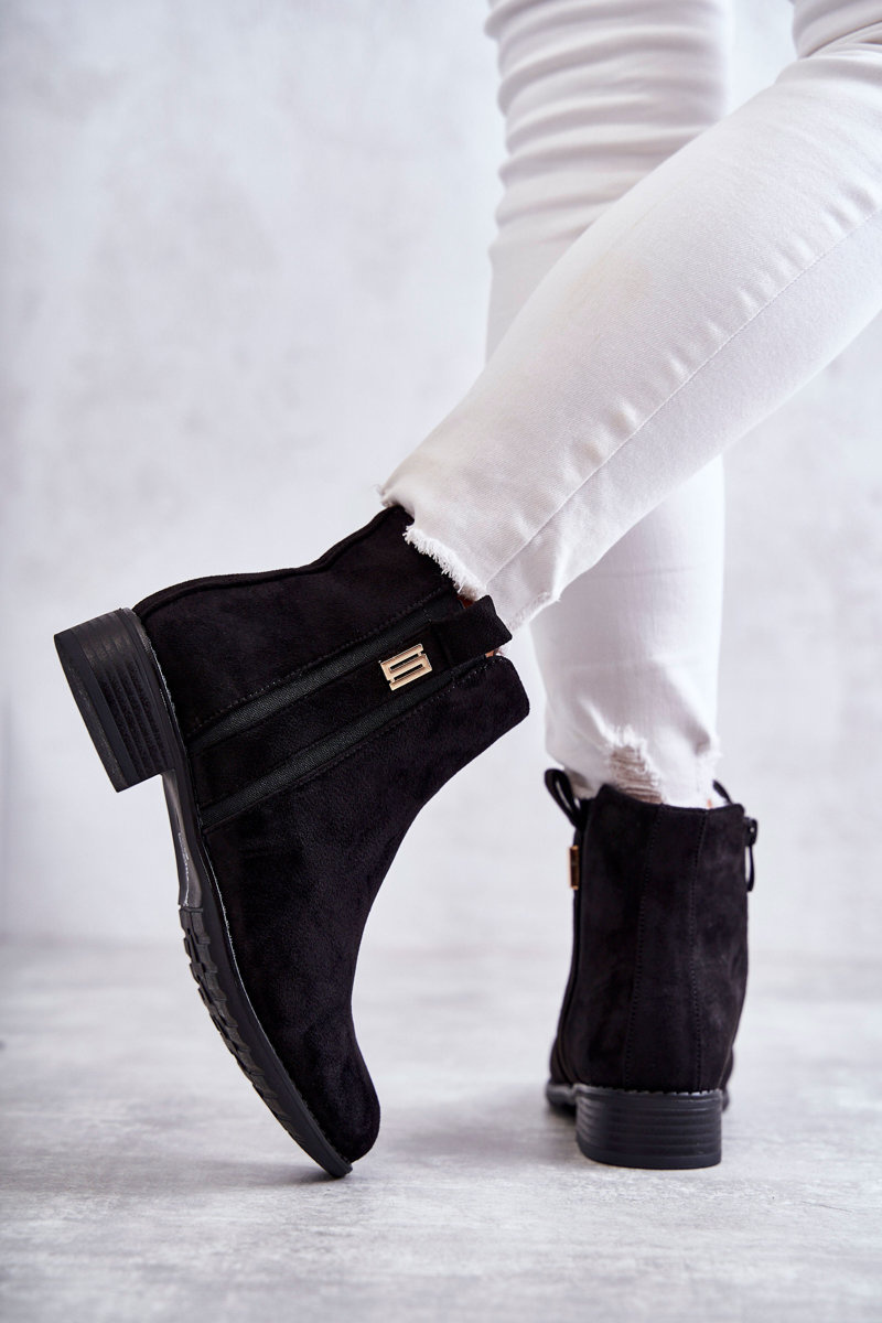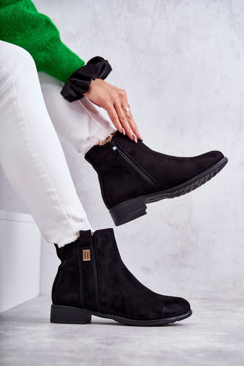 Klasické topánky vyrobené z ekologického semišu na dotyk. Majú dekoratívny znak na boku hornej časti. Ploché vložené. Tieto topánky majú zaoblený nos a stuhnutú pätu. Interiér bol izolovaný prikrývkou obuvi. Na strane hornej časti je posúvač na uľahčenie inštalácie obuvi. Nezabudnite skontrolovať ďalšie modely topánok dostupných v našej ponuke! Pri výbere veľkosti navrhnite tabuľku veľkosti.