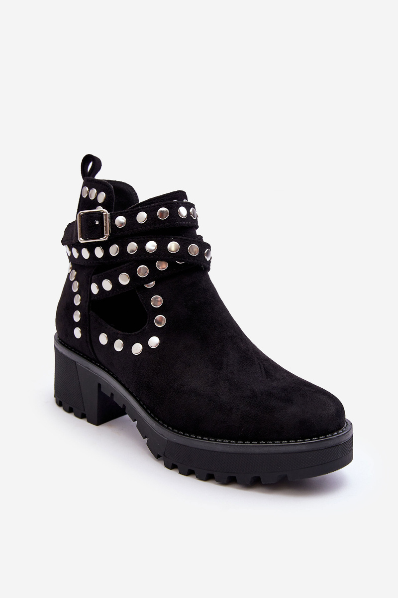 Dámske semišové topánky s dekoratívnymi cvočkami čierna Bella