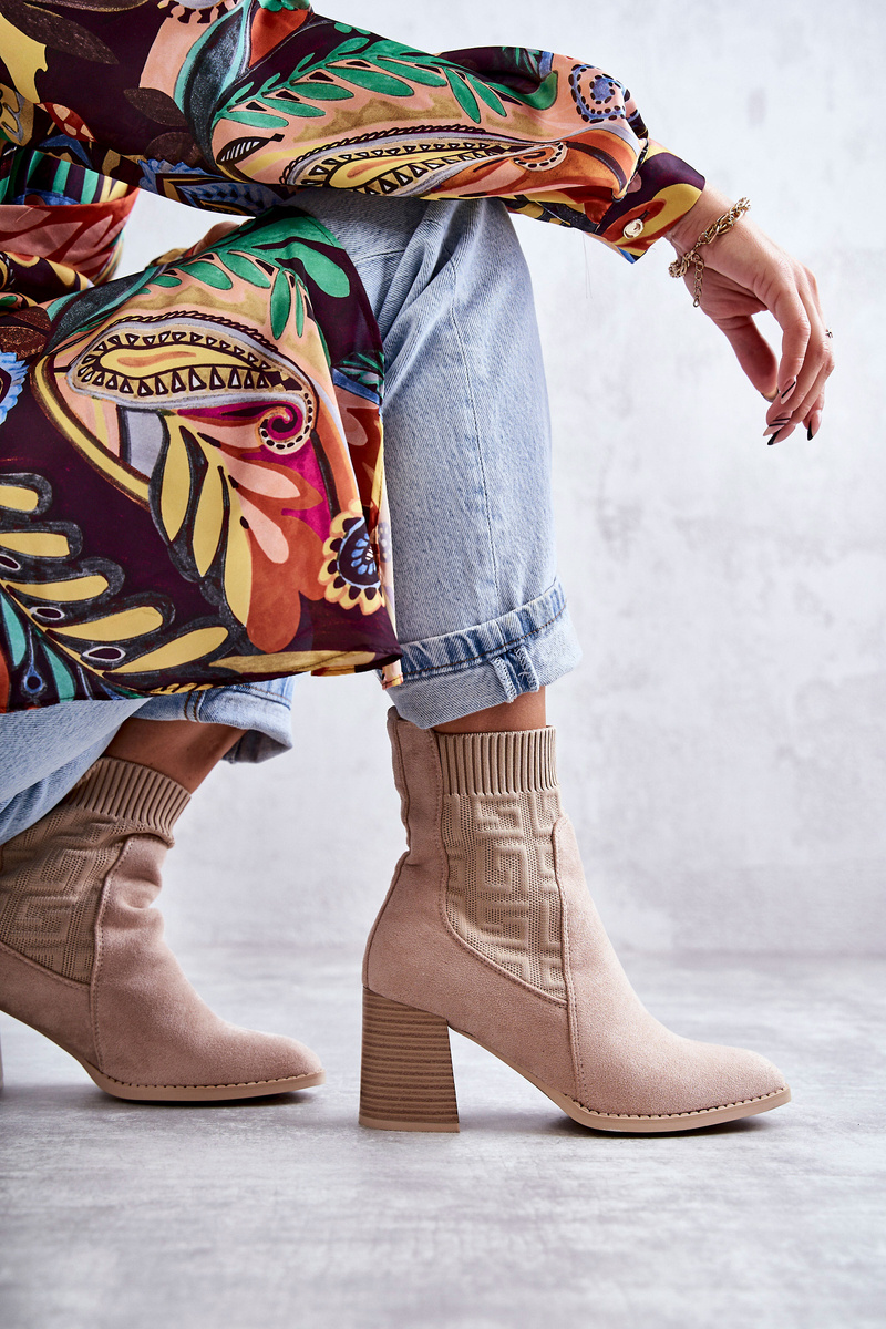 Dámske semišové topánky s ponožkami béžové montety
