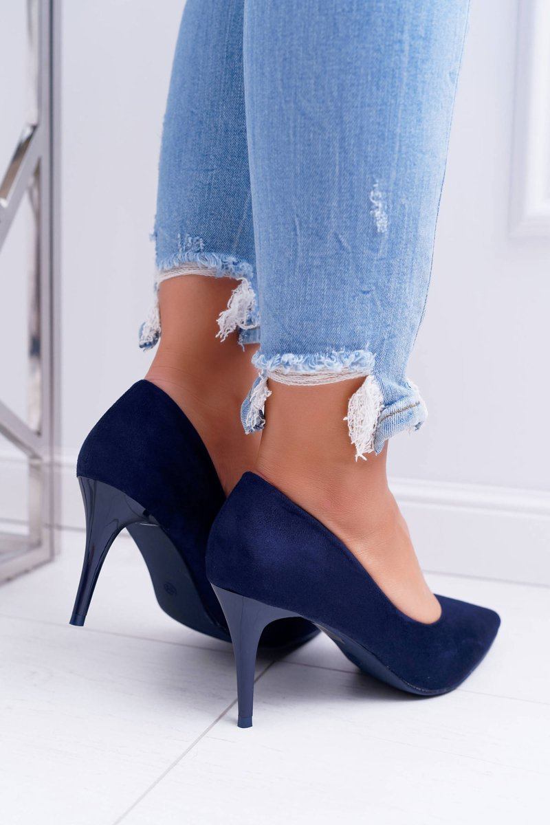 Dámske semišové vysoké podpätky v námornej modrej smotane