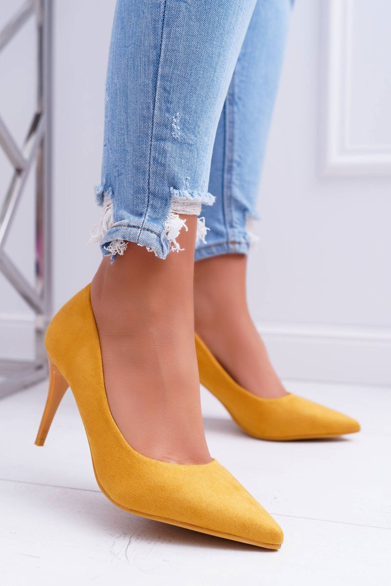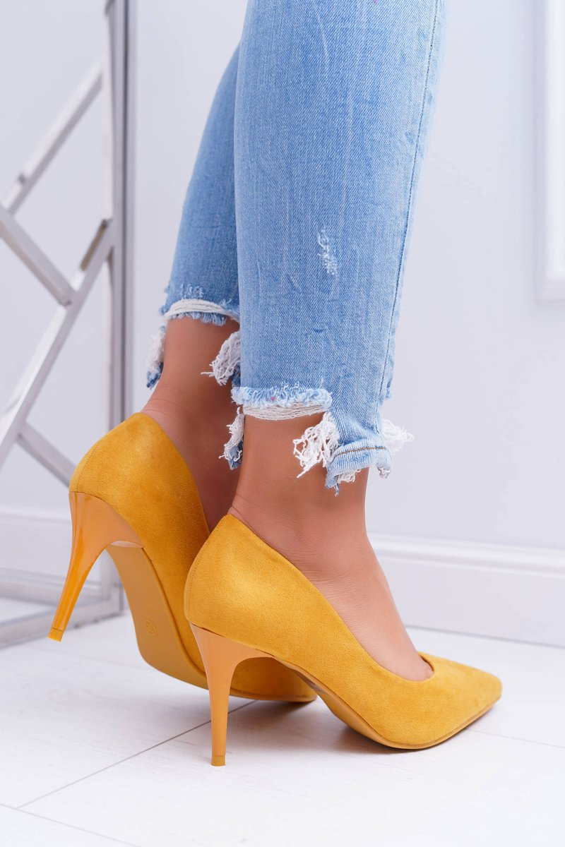 Dámske semišové vysoké podpätky v žltej kréme Spitz