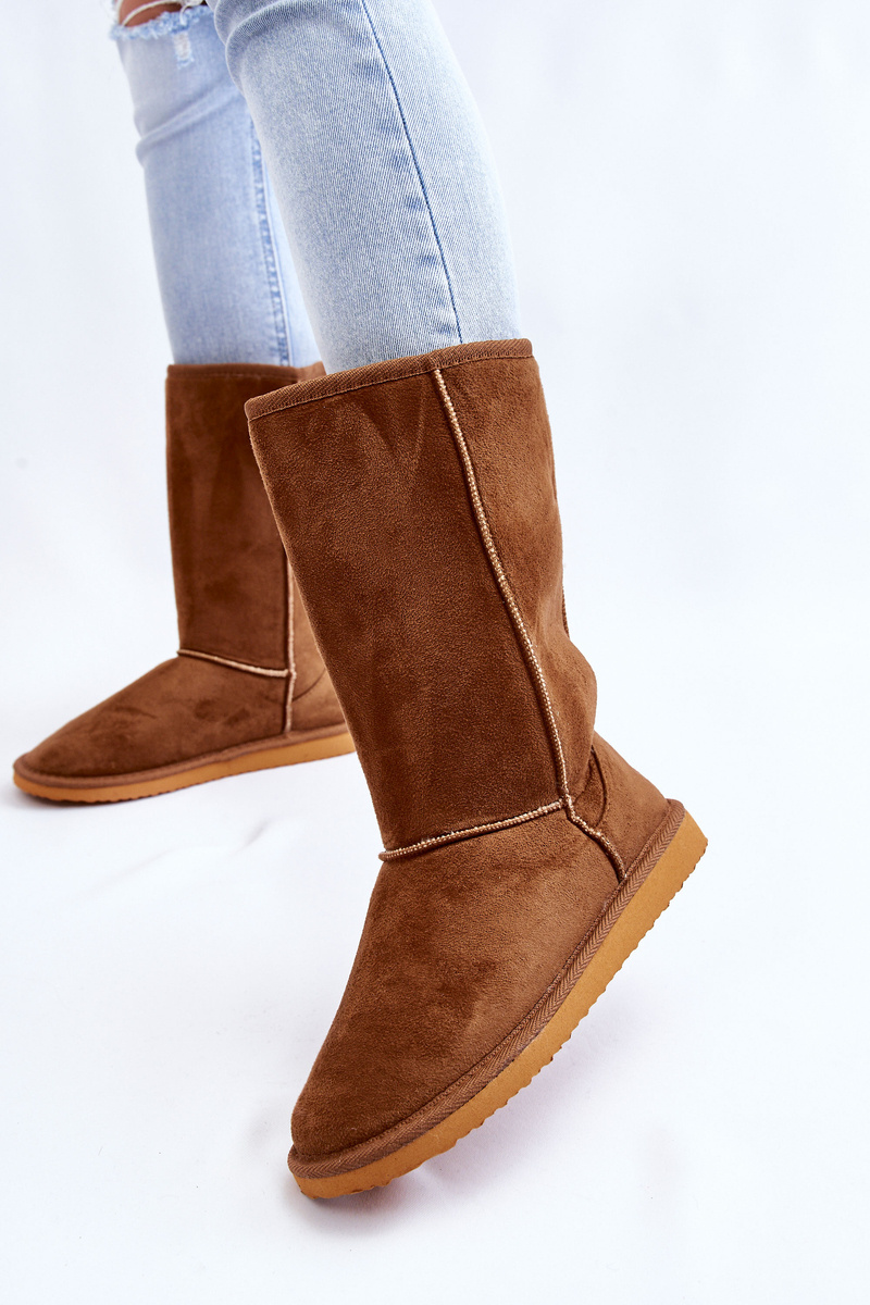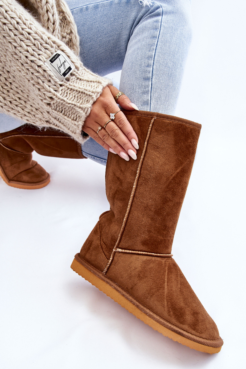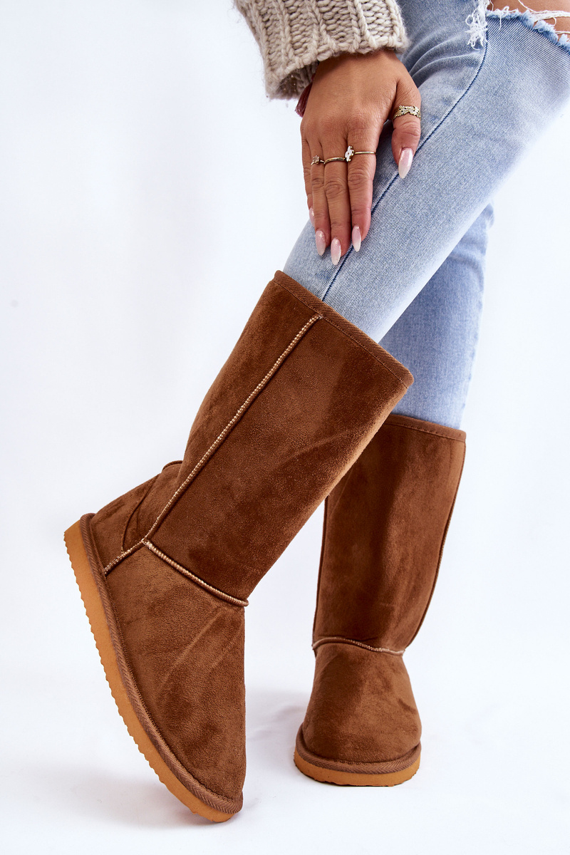 Dámske semišové vysoké snehové topánky, izolovaná ťavová reyma