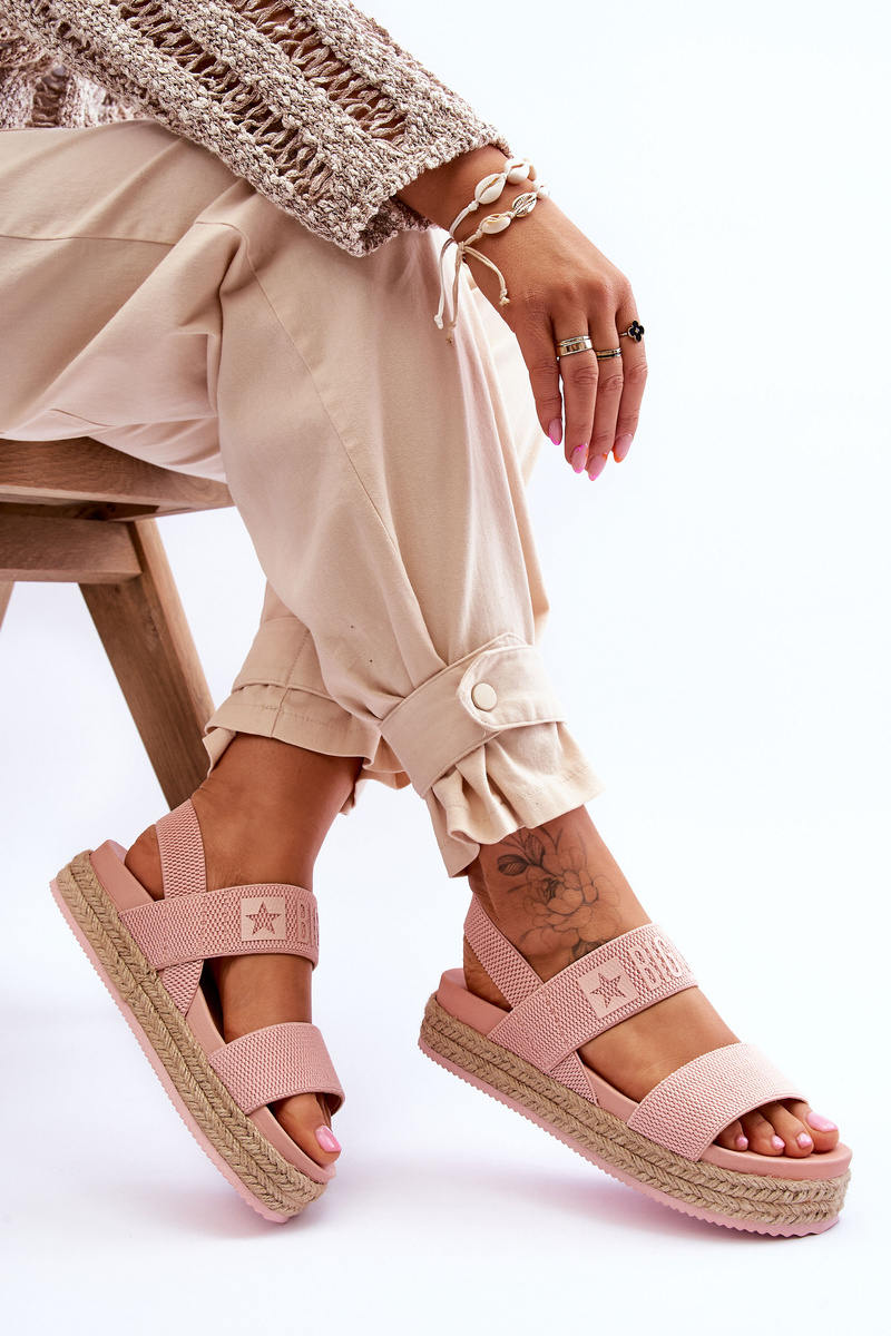 Ľahké, ženské sandále z značky Big Star boli vyrobené z textilného materiálu. Tento model je skĺznutý. Zriadenie obuvi uľahčí flexibilnú gumu. Sandále sú zabudované na masívnej plošine zdobenej jutovým copom. Sandále majú plastovú vložku. Nezabudnite skontrolovať ďalšie modely sandálov od značky Big Star! Pri výbere veľkosti navrhnite tabuľku veľkosti. p>