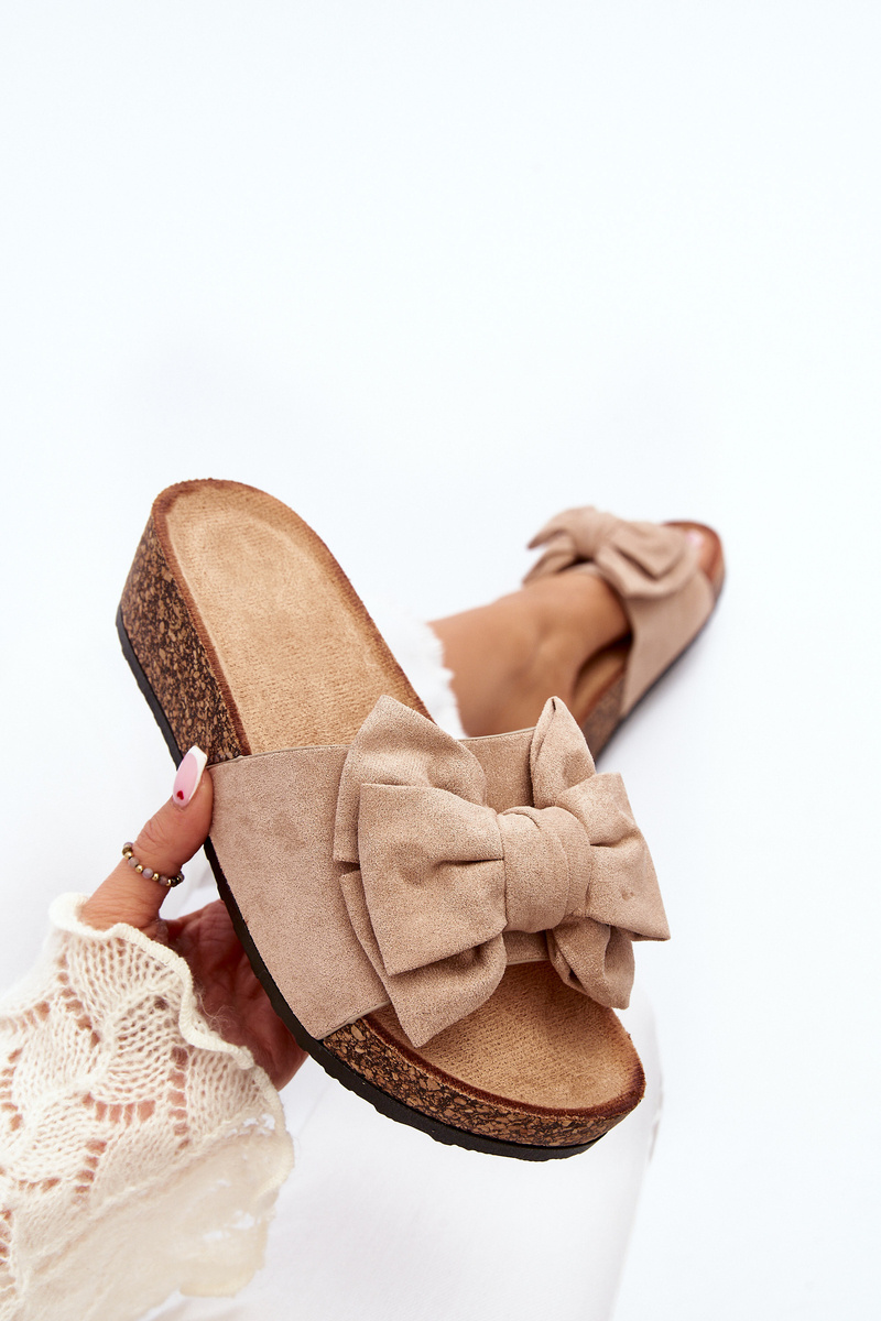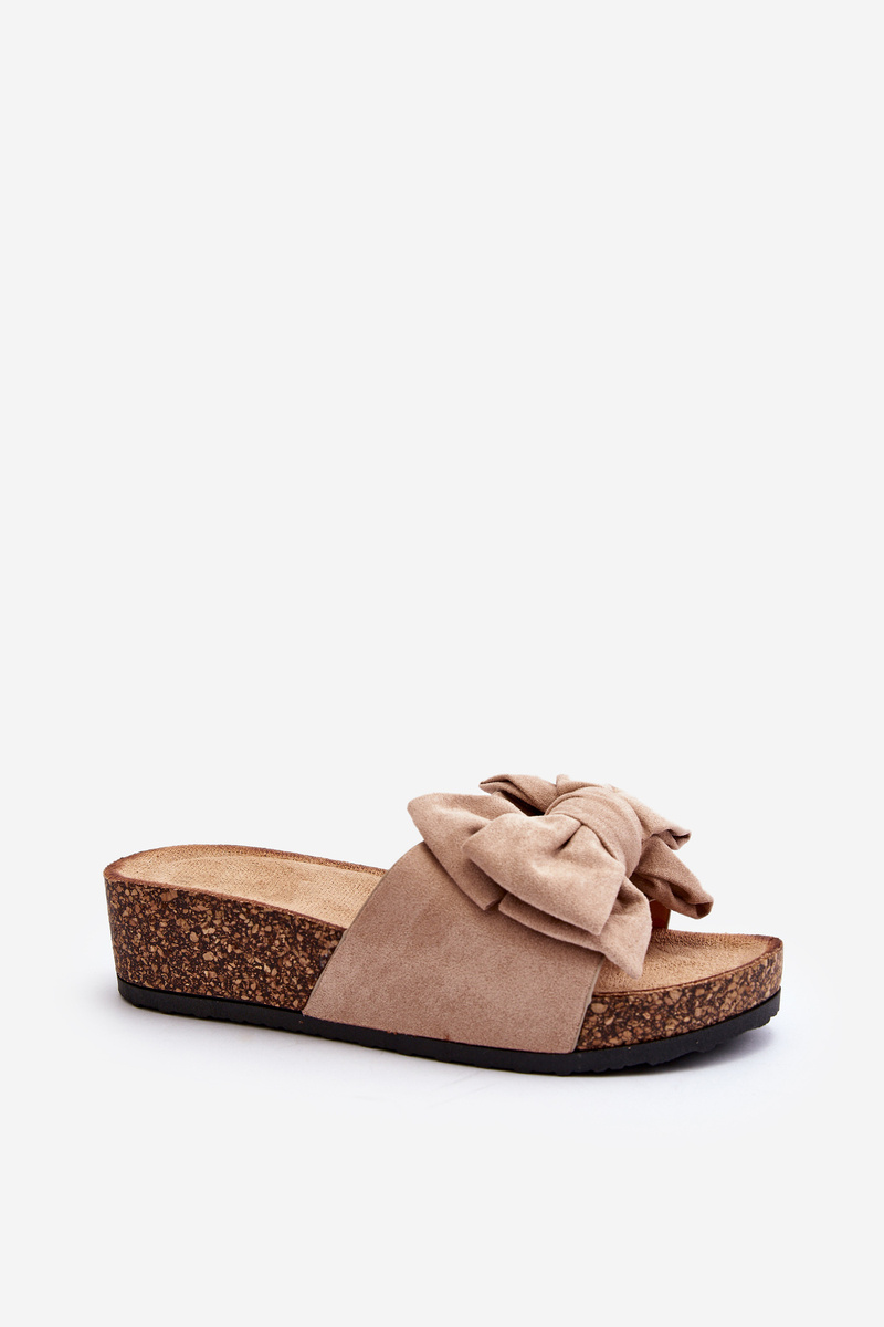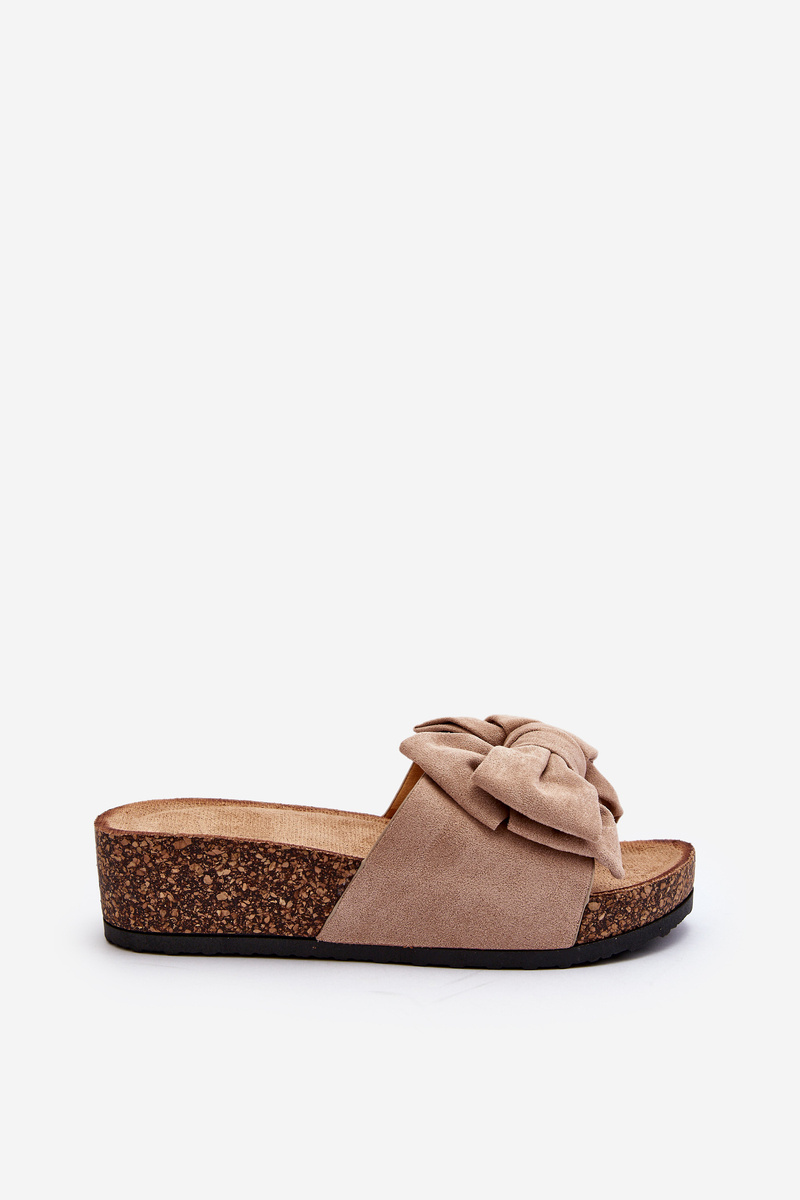 Dámske šľapky na korkovej platforme s mašľou khaki Tarena