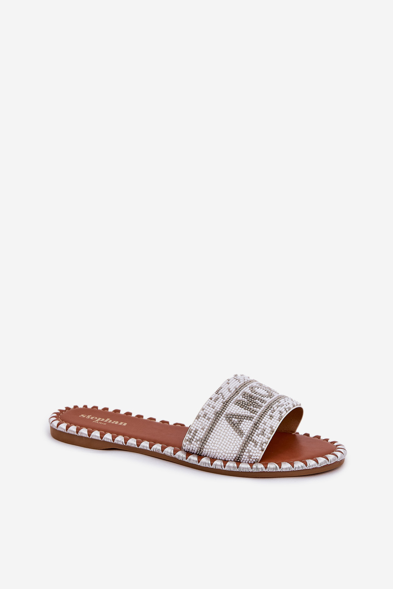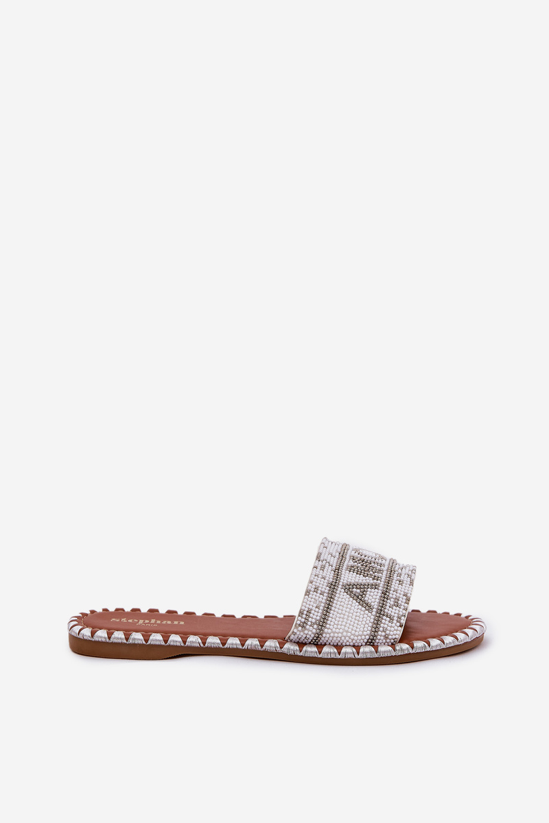 Dámske Šľapky Na Plochéj Päte S Ozdobou Biele Dorfedi