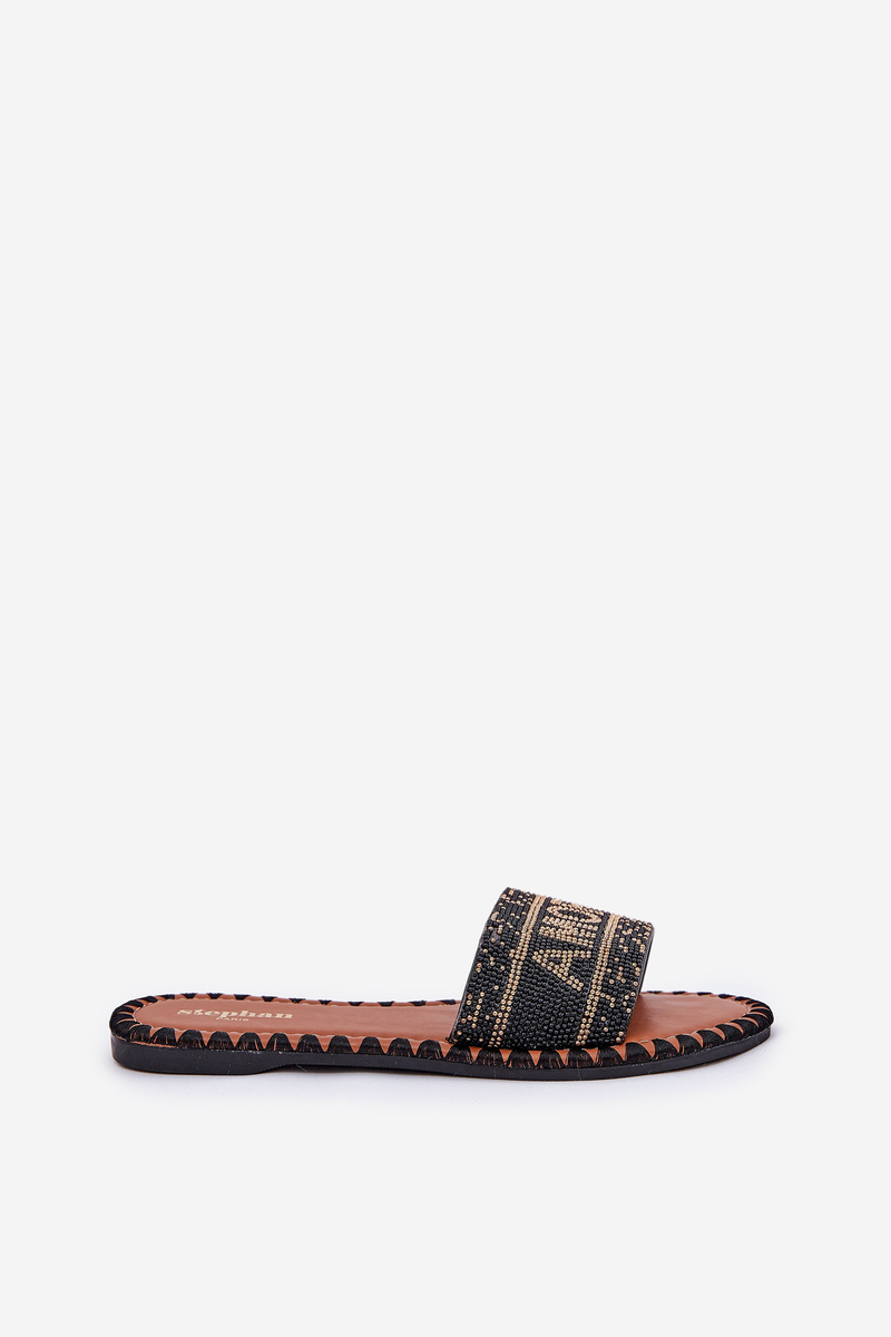Dámske Šľapky Na Plochéj Päte So Zdobením Čierne Dorfedi