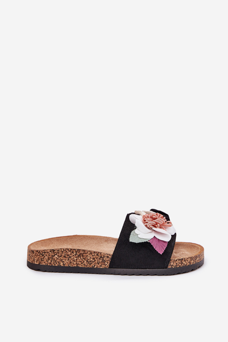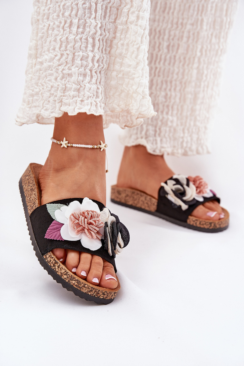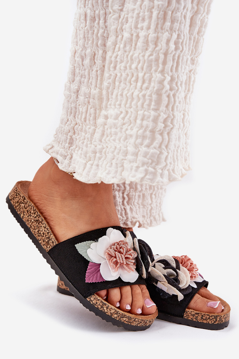 Dámske Šľapky S Kvetmi Na Korkovej Platforme Čierne Zinrosa