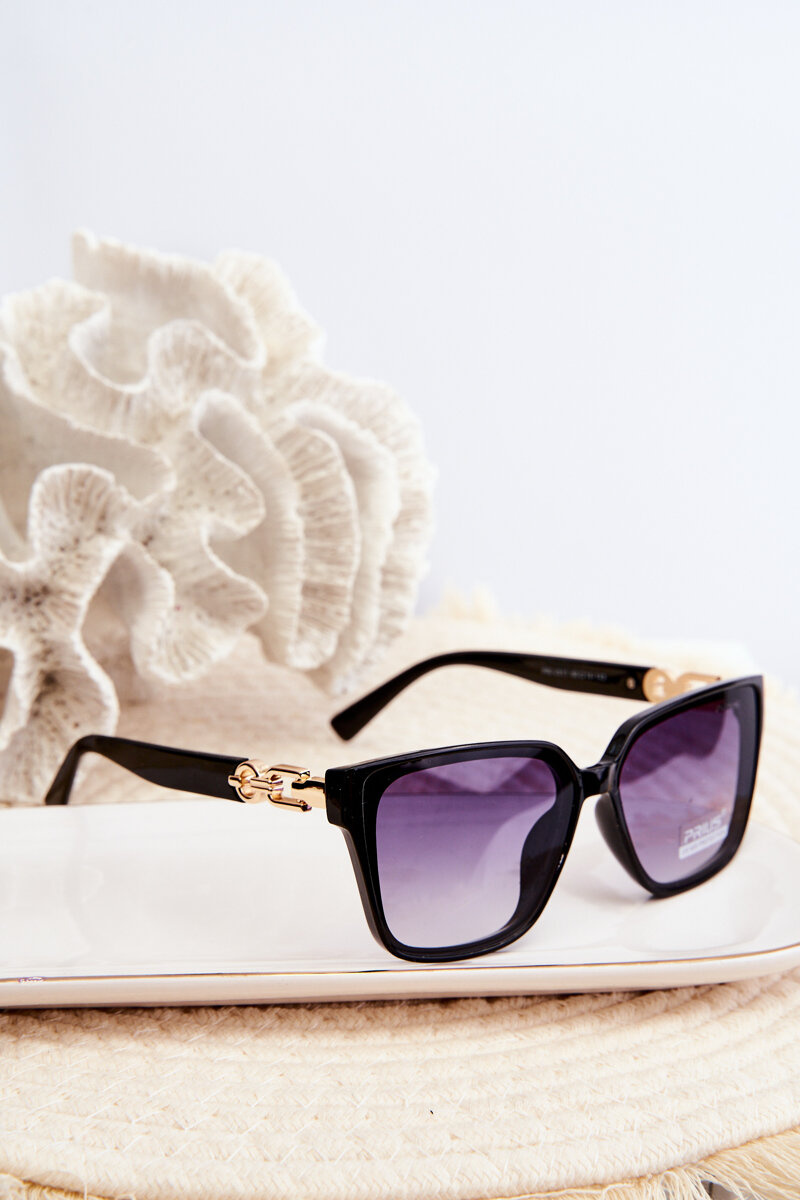 Dámske Slnečné Okuliare S Čiernym Detailom Zlatým UV400 Čierne