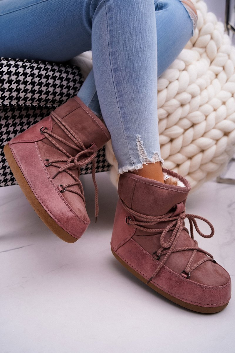 Dámske snehové topánky izolované ružovým kožušinou veme