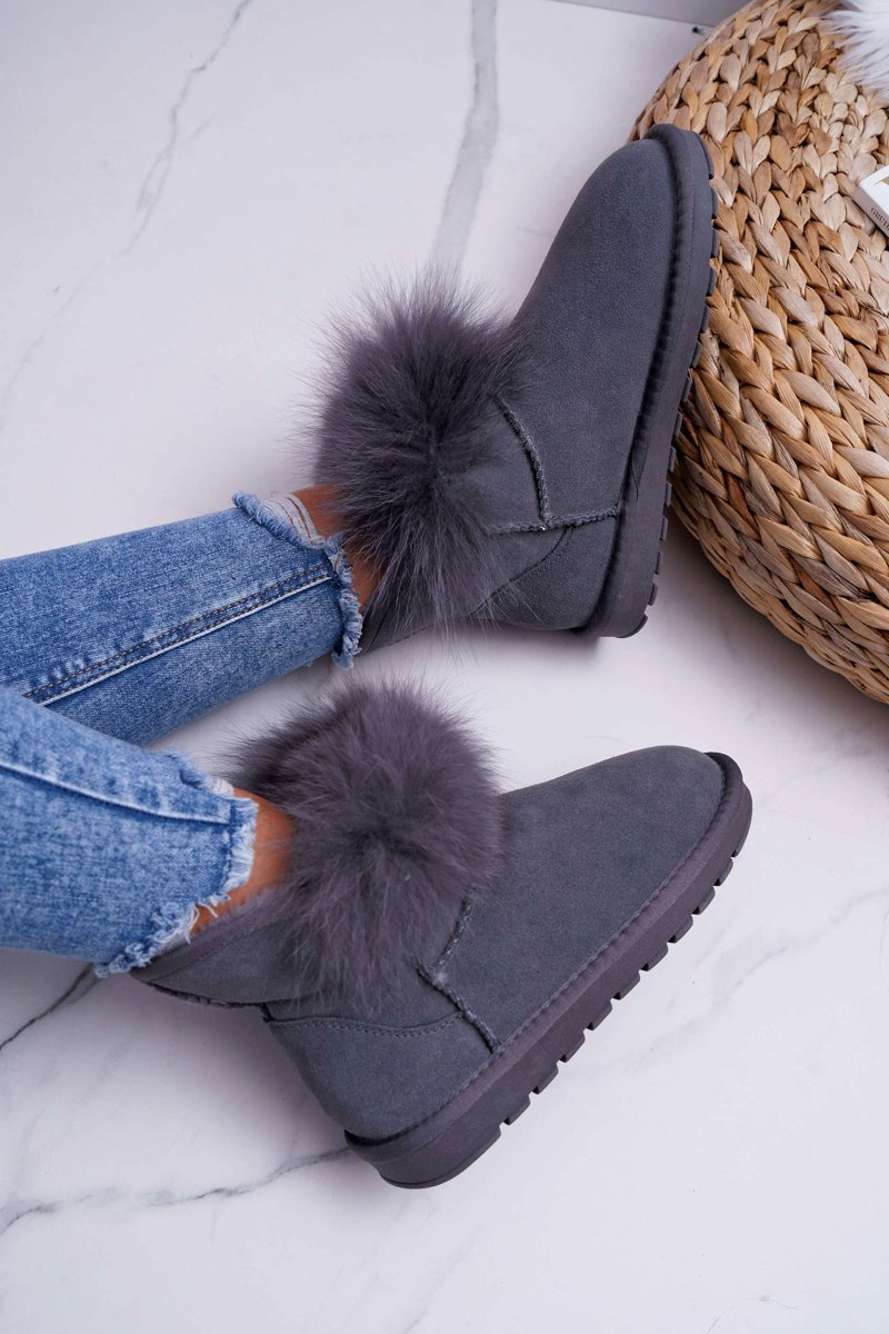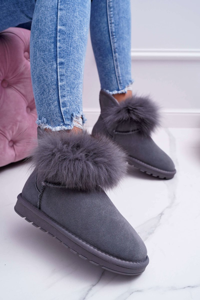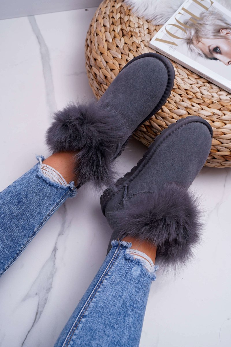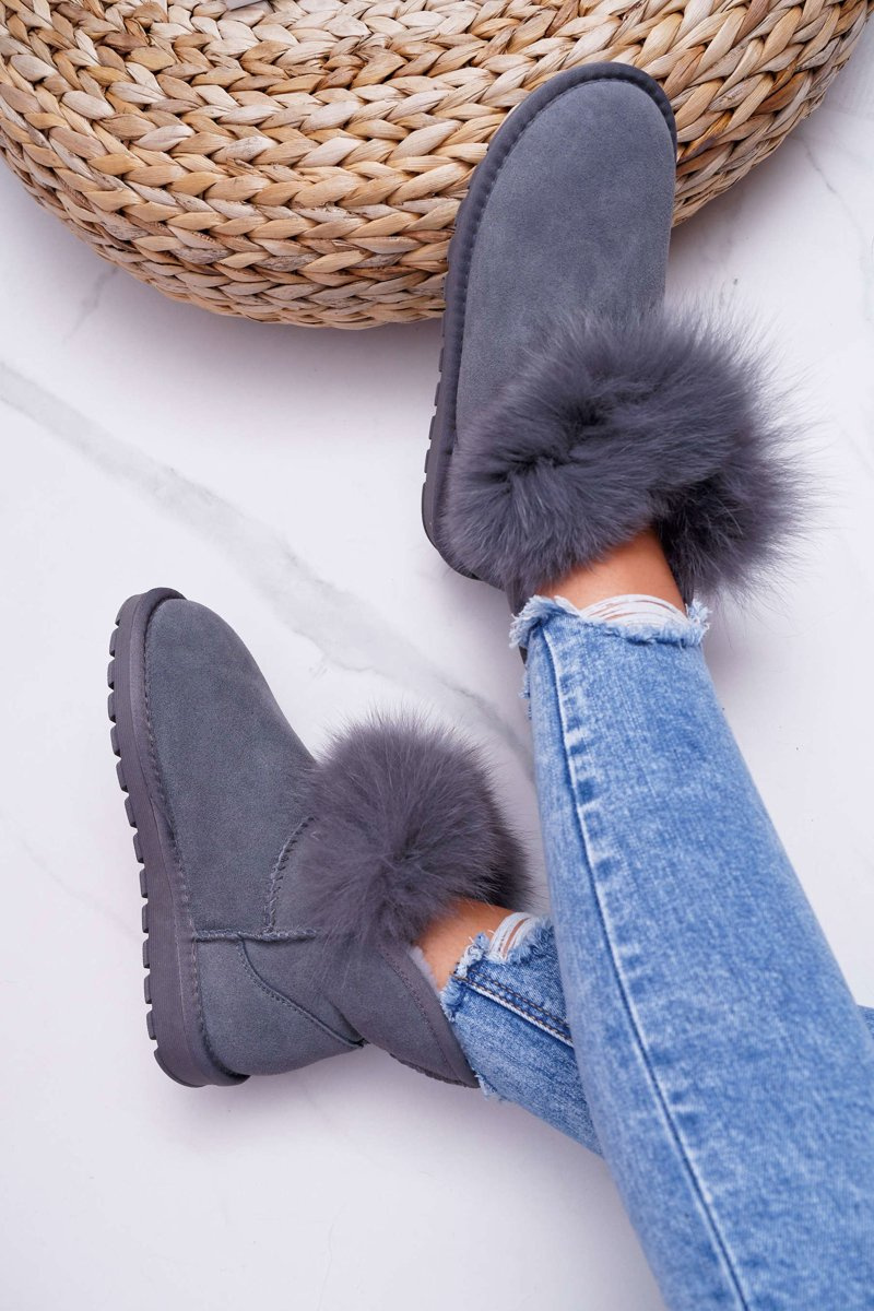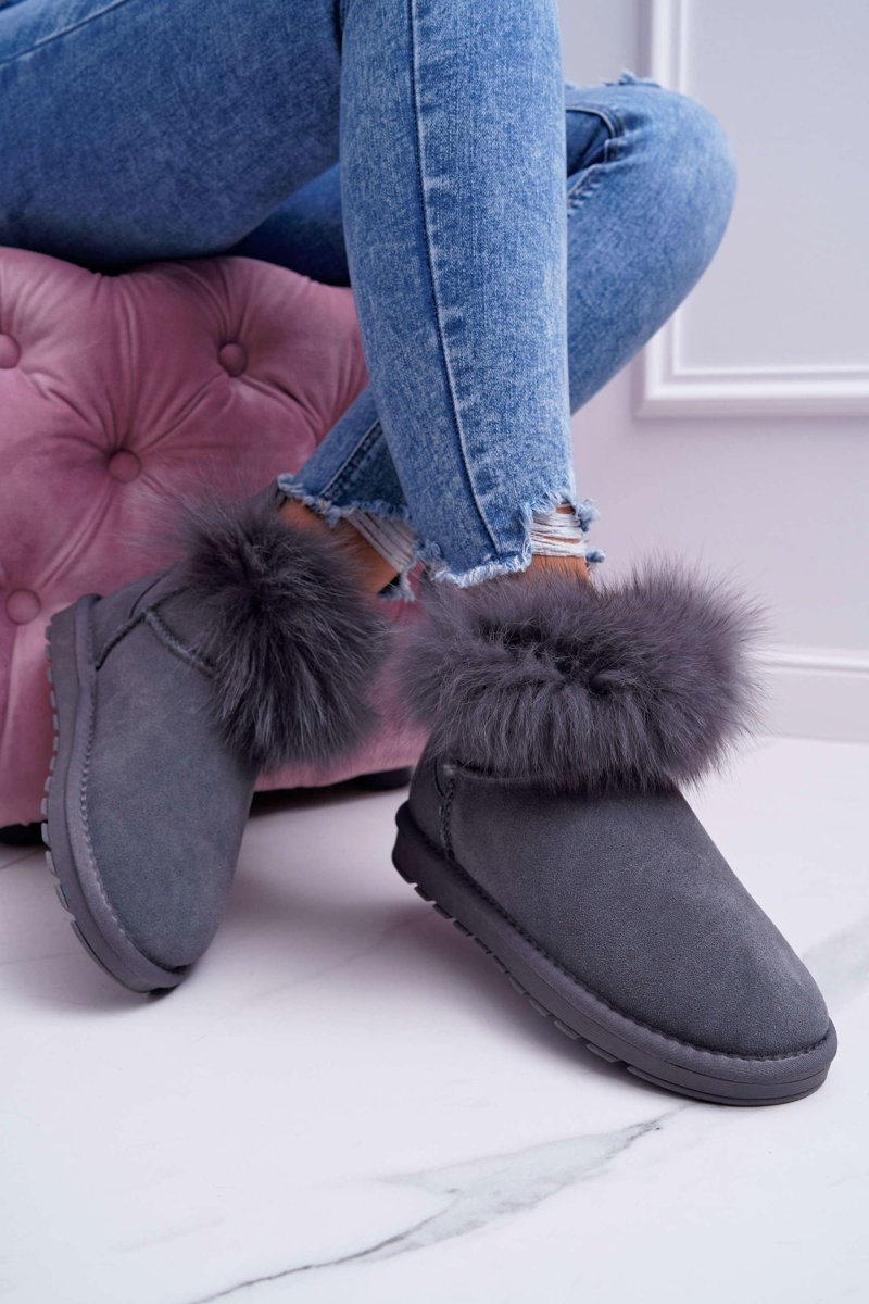 Dámske snehové topánky izolované s kožušinovou šedou memento
