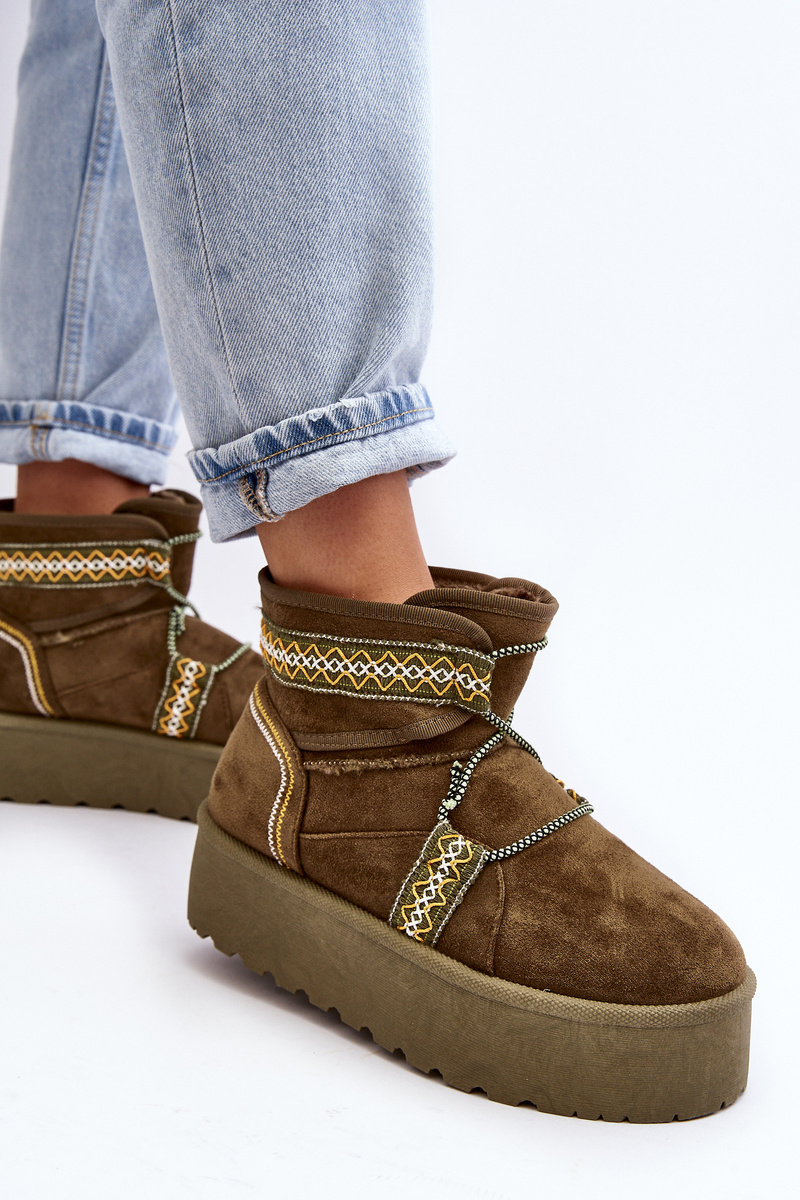 Dámske snehové topánky na hustej podrážke so zelenou viazaním Milson