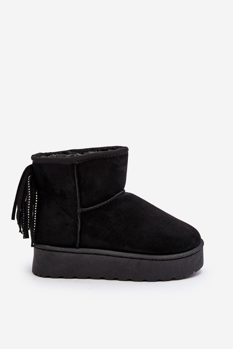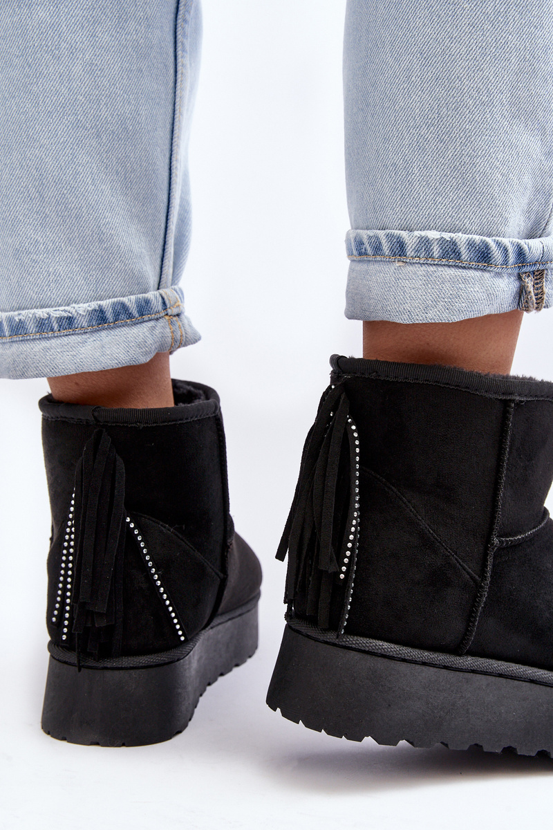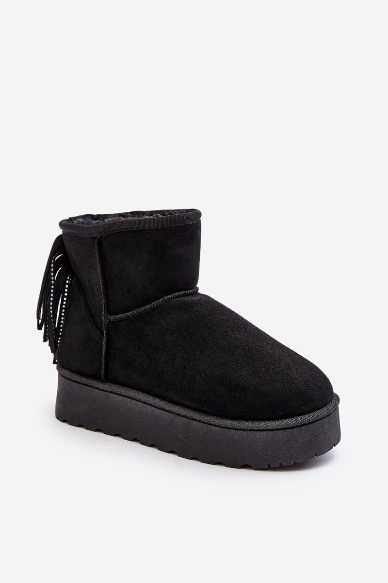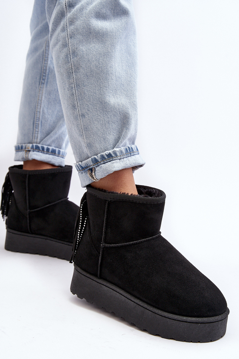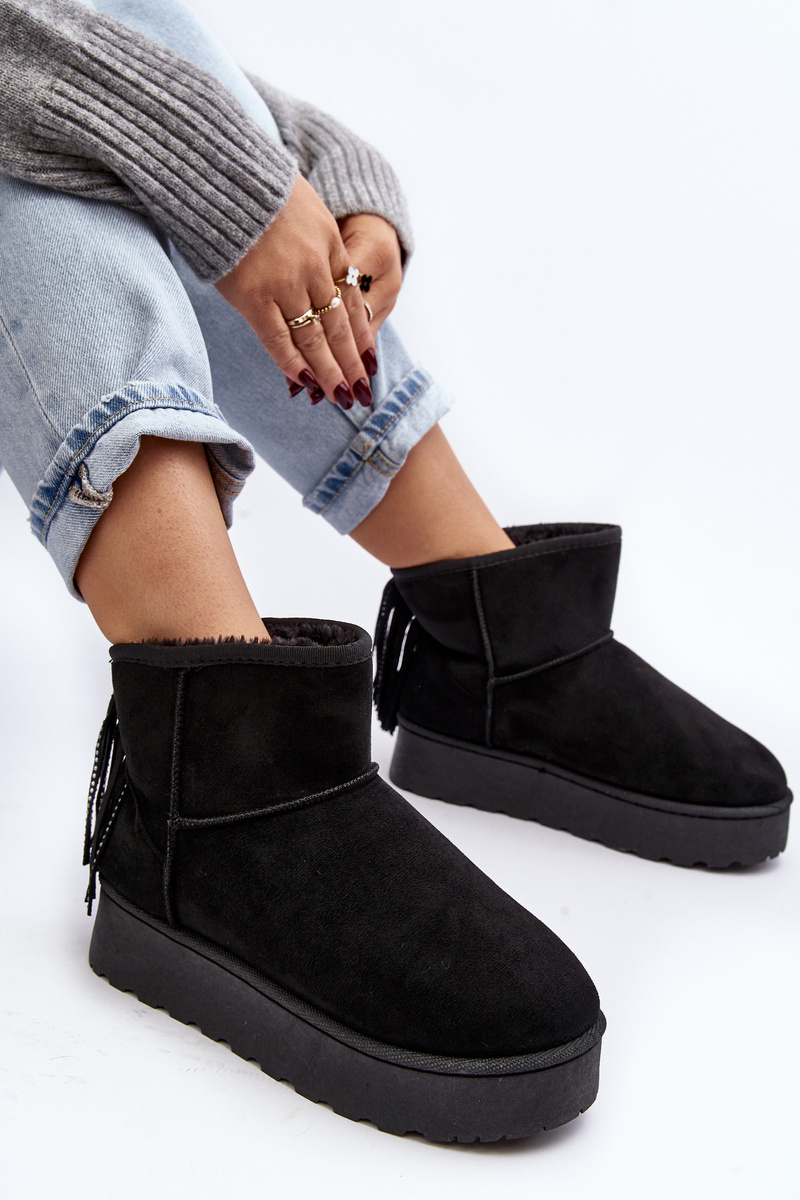 Dámske snehové topánky vyrobené z ekologického semišu. Miešené na masívnej podrážke vyrobenej z gumového plastu. Zvonok členku zdobený strapcami vzadu. Činidlo izolovalo hrubú kožušinu. Tento model sa vyskytuje aj vo veľkostiach detí. Vytvorte set mamu + dieťa! Pri výbere veľkosti navrhnite tabuľku veľkosti.