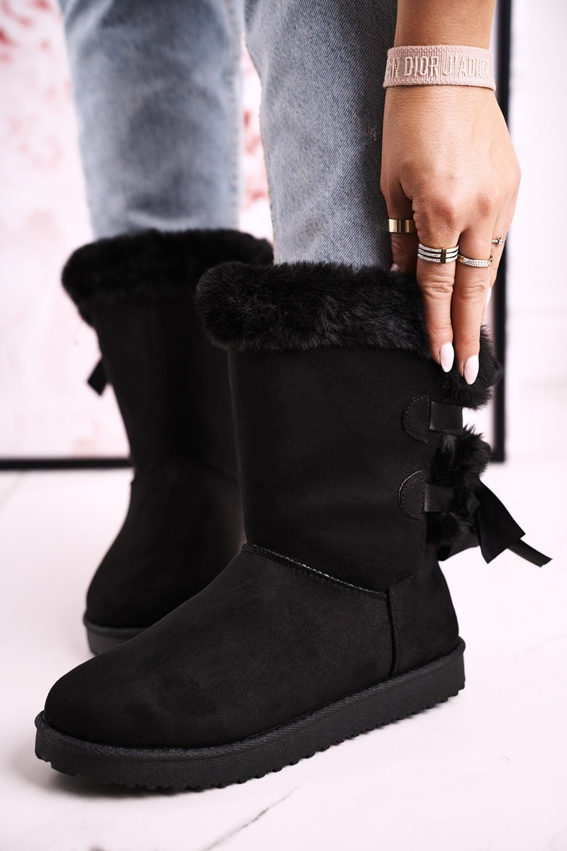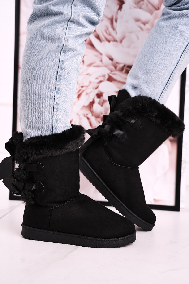 Dámske snehové topánky s stuhou izolovanou čiernou kaylee kožušinou