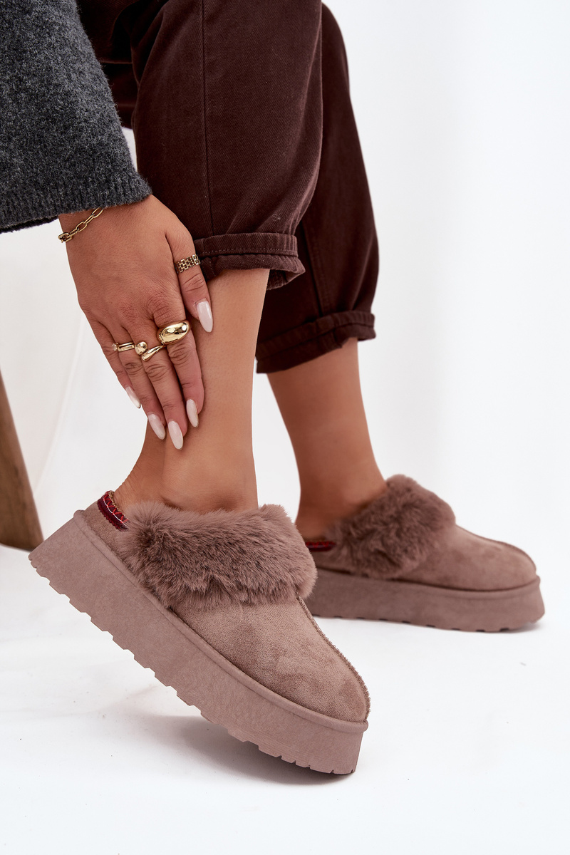 Dámske snehule na platforme s kožušinou a výšivkou tmavobéžové Querina
