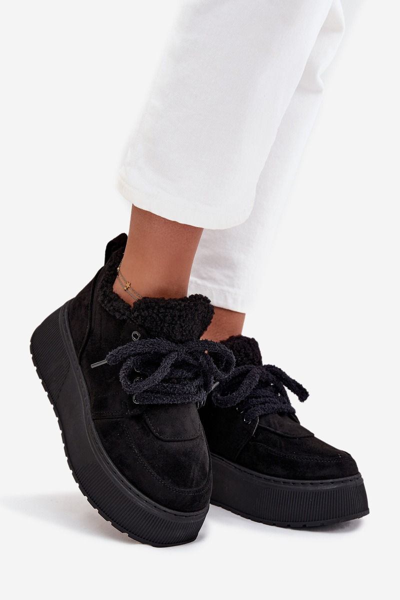 Dámske snehule na platforme s podšívkou z ovčej vlny Typ ovečka Čierne Luma