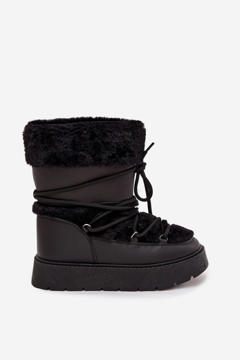 Dámske Snehule S Kožušinou A Šnurovaním Na Platforme Čierne Marinna