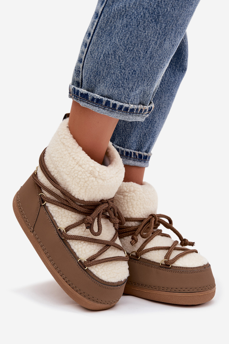 Towar wprowadzony przed 13.12.2024Tak Dámske snehule s ovčou kožou na zaväzovanie tmavobéžové Belira