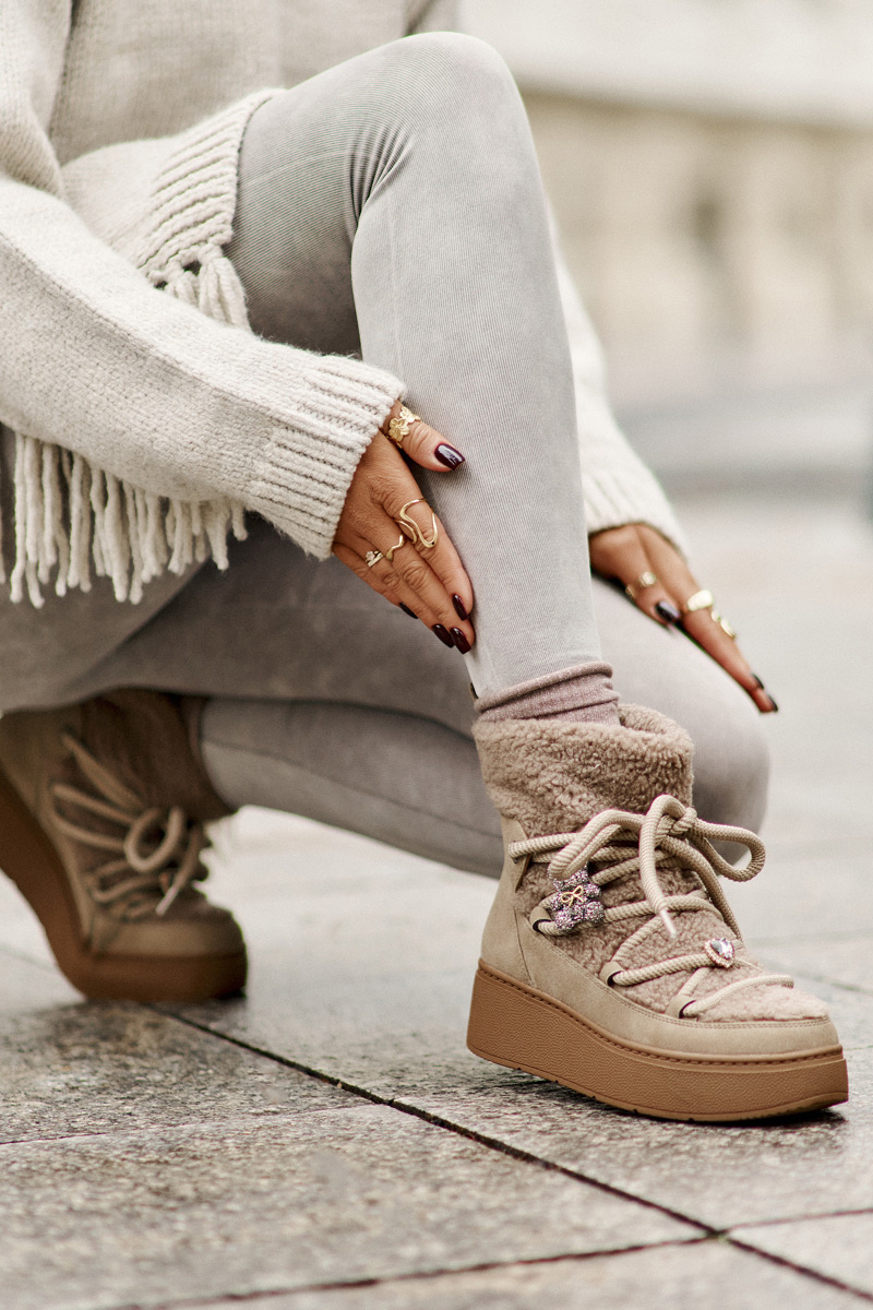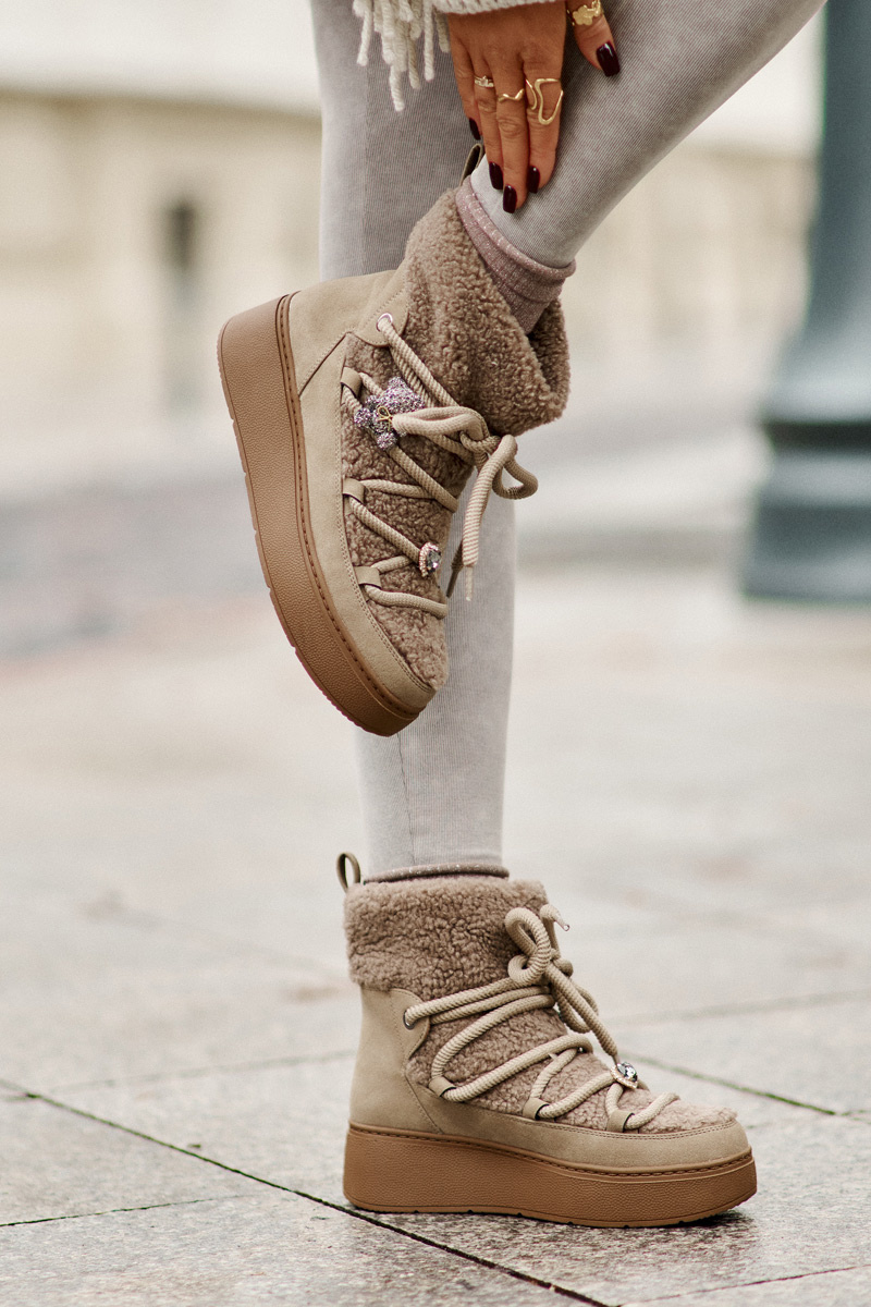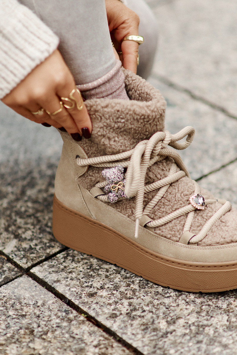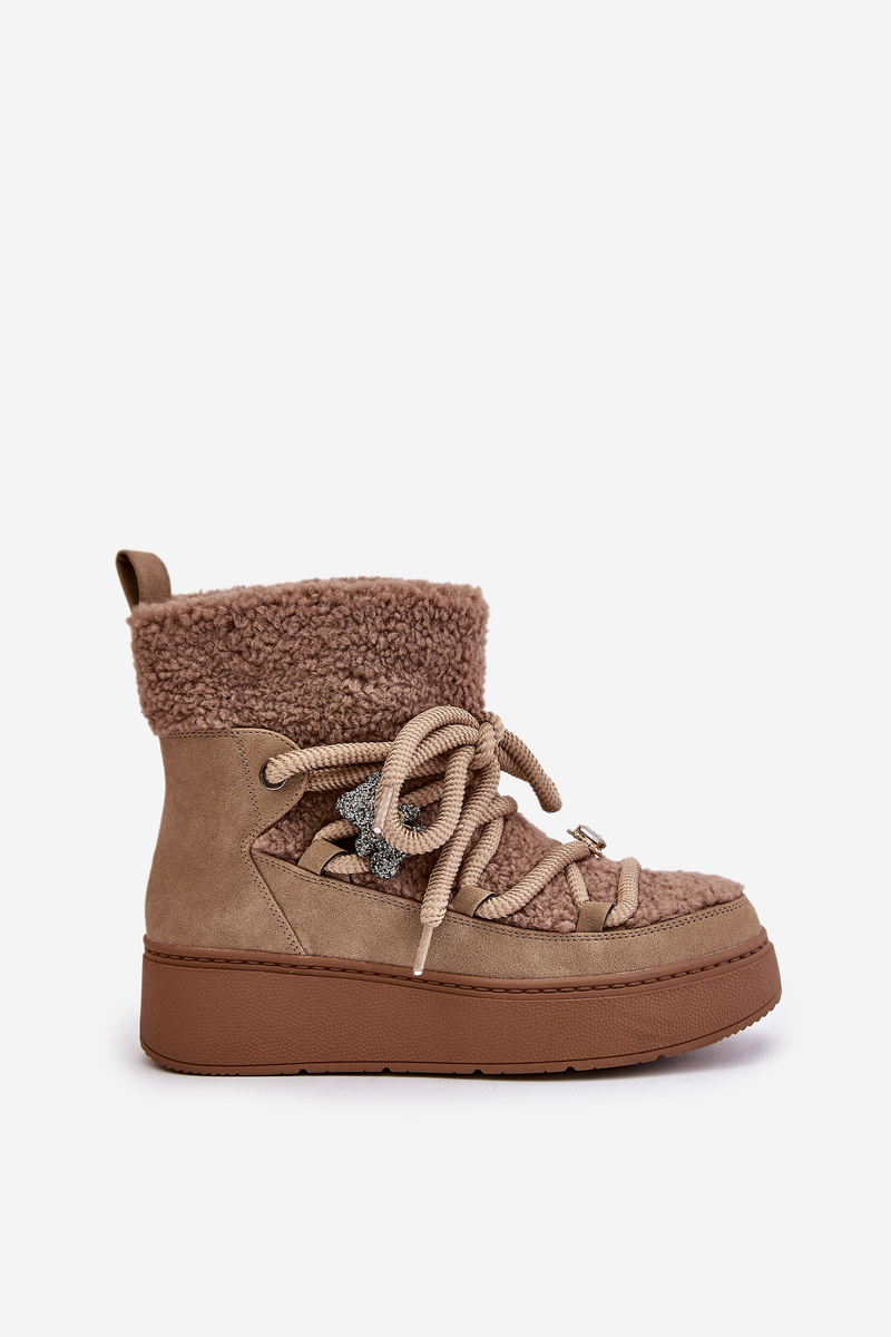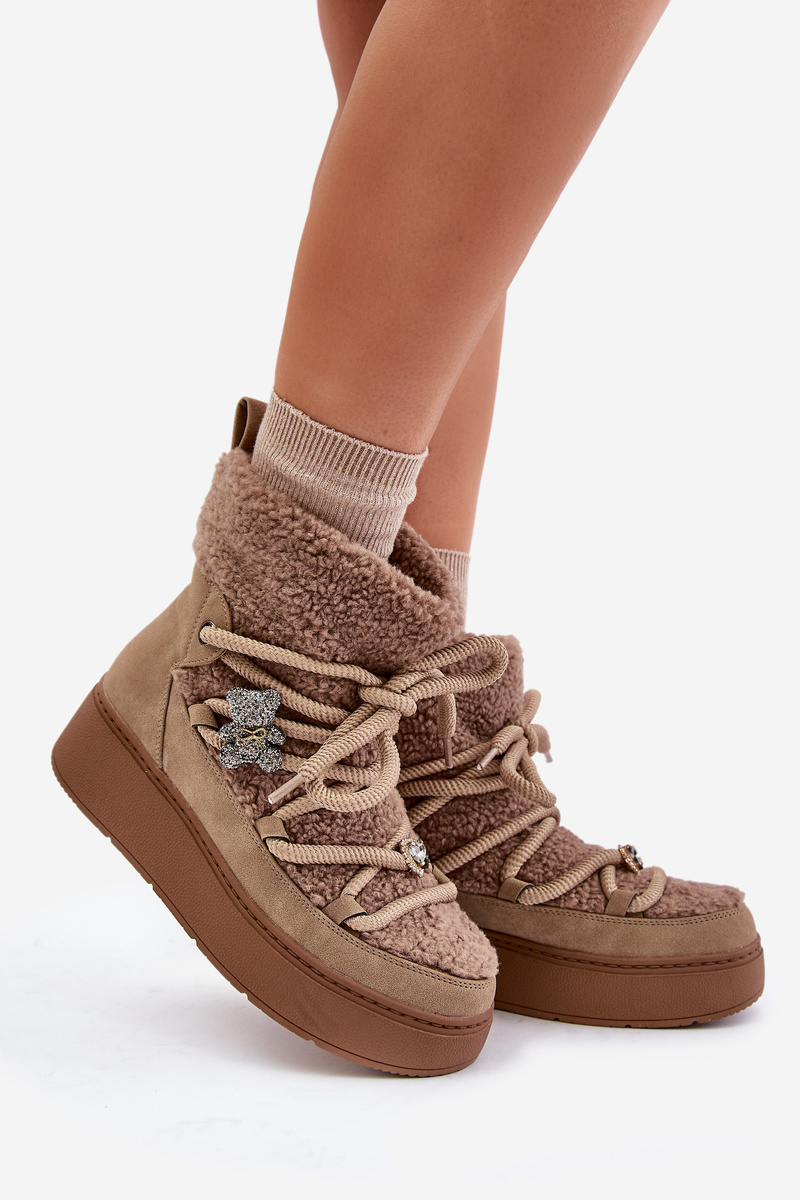 Dámske Snehule S Ozdobami A Baraním Kožúškom Hnedé Almatiza