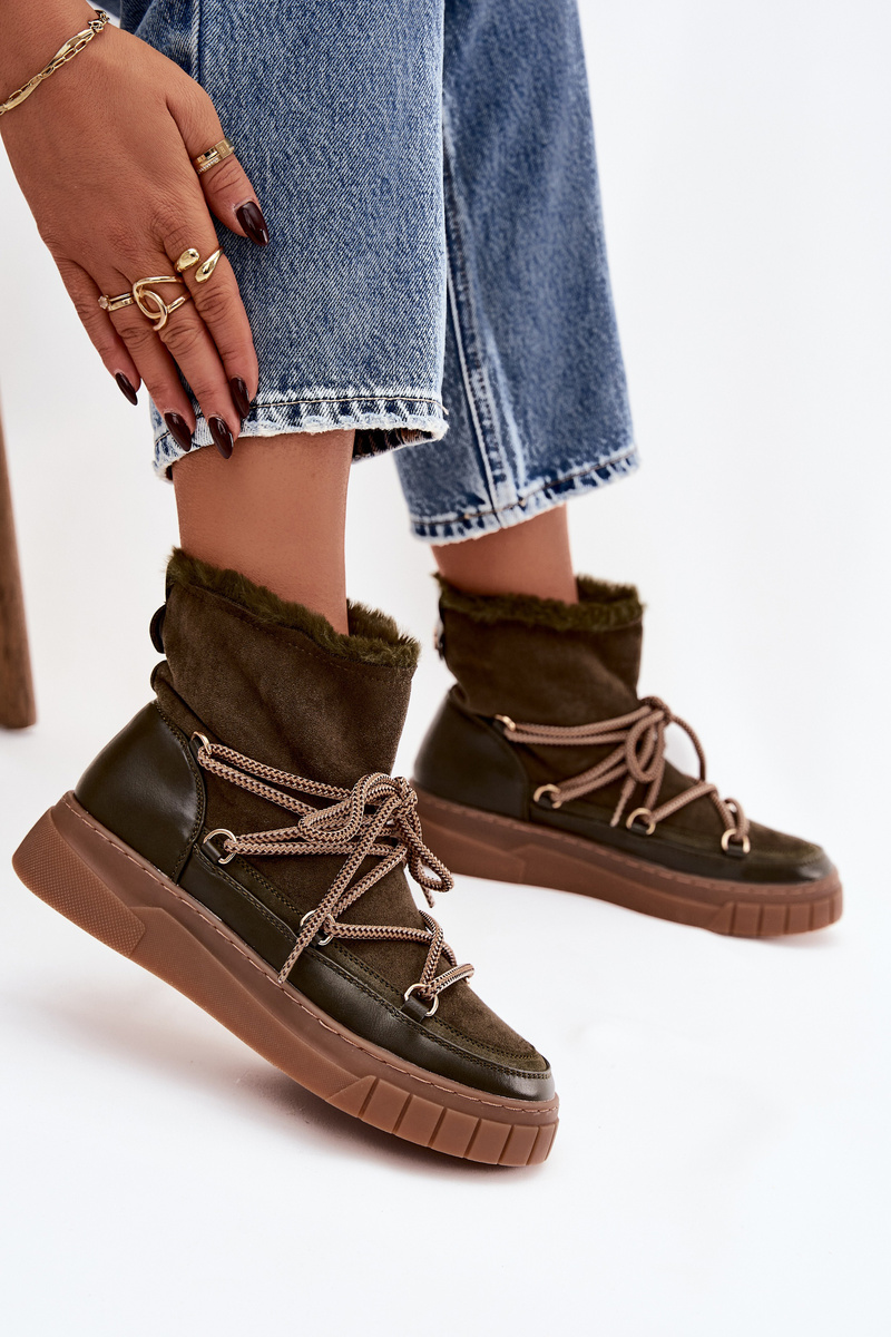 Dámske snehule s šnúrkami tmavá zelená Isalisse