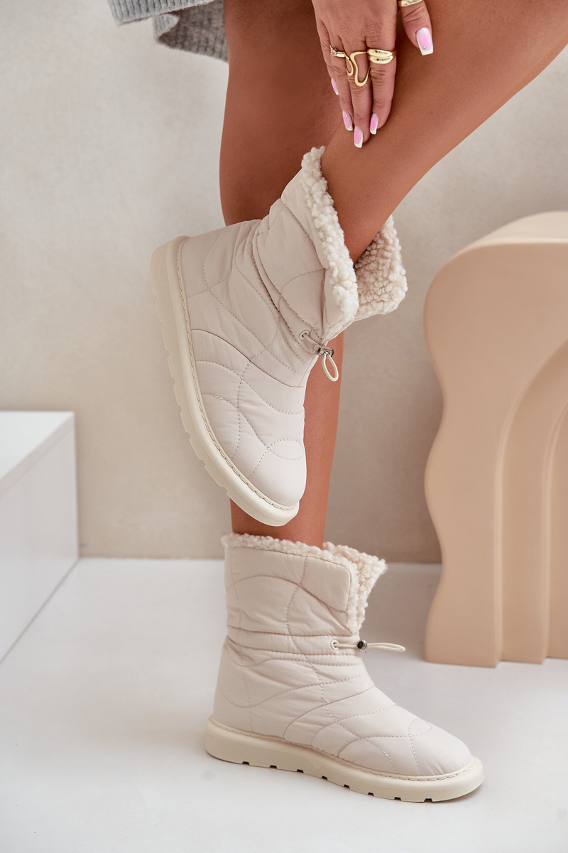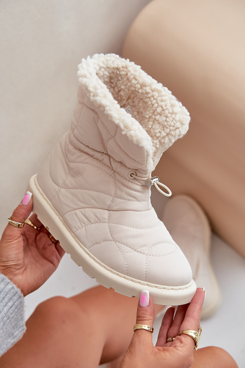 Dámske Snehule So Sťahovaním Zateplené Ovčou Kožou Svetlo Béžové Vamidra