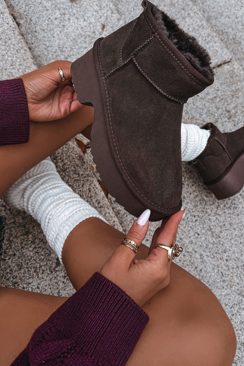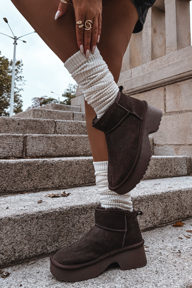 Dámske snehule z prírodného semišu vyhriate kožušinkou čokoládové Milora
