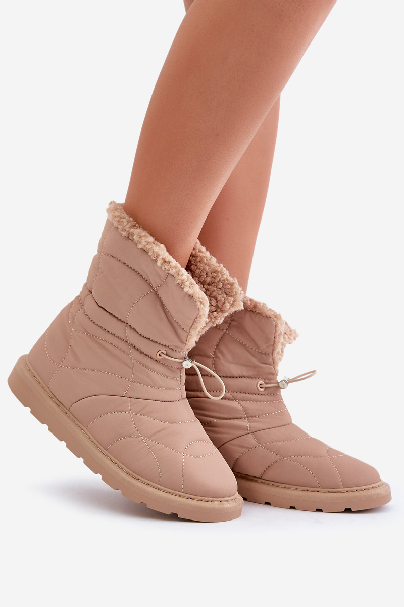 Dámske Snežnice So Šnúrkou Zateplené Ovčou Kožou Béžové Vamidra