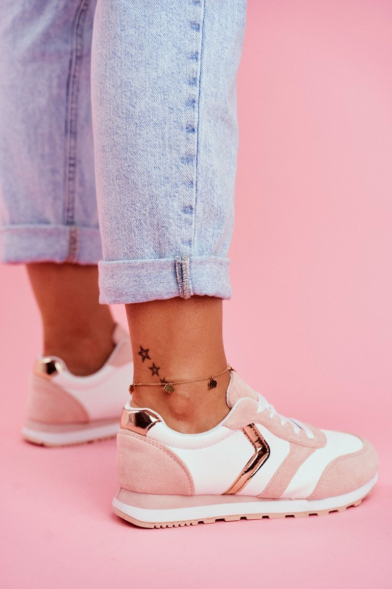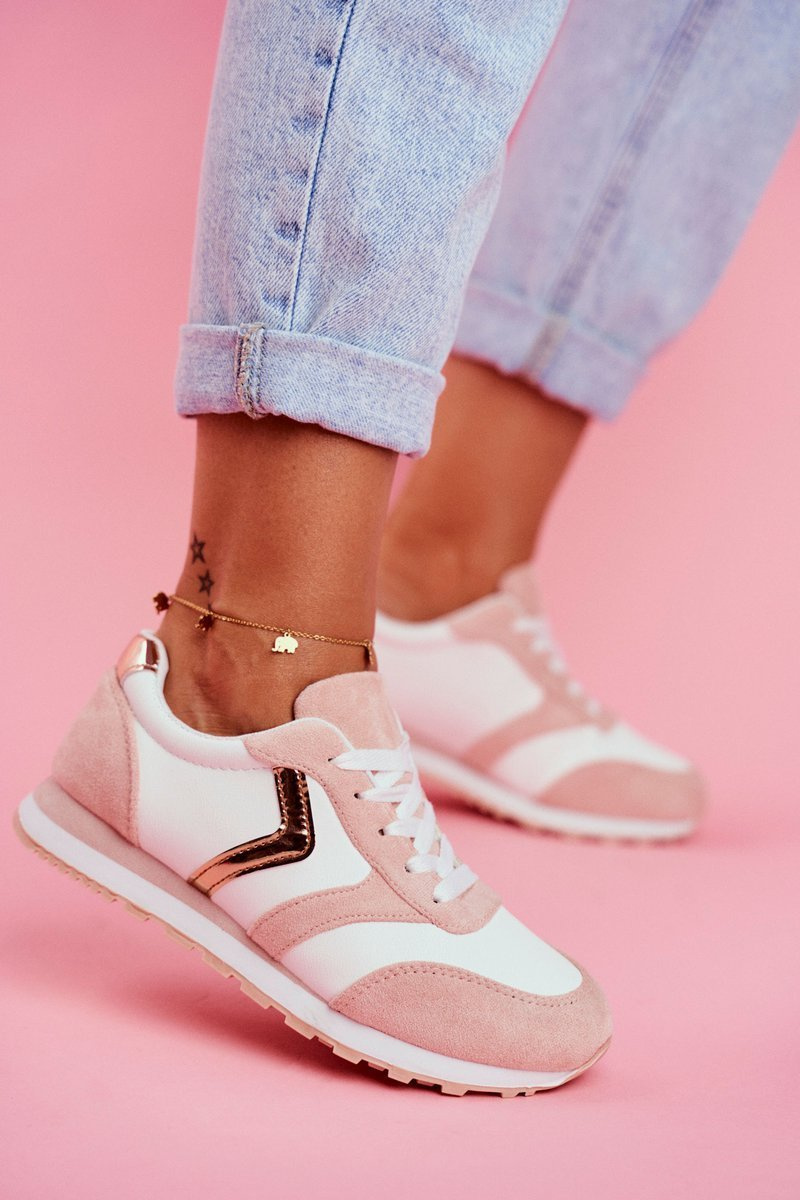 Dámske športové biele a ružové ruletové topánky