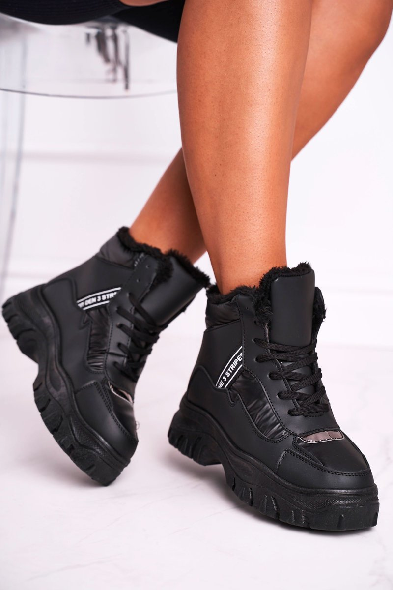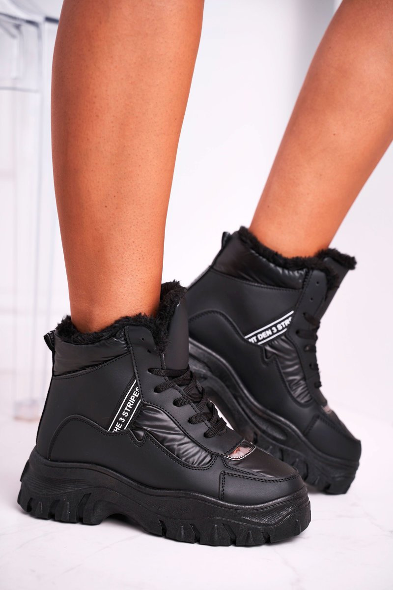 Dámske športové snehové topánky s kožušinou čiernou eufóriou