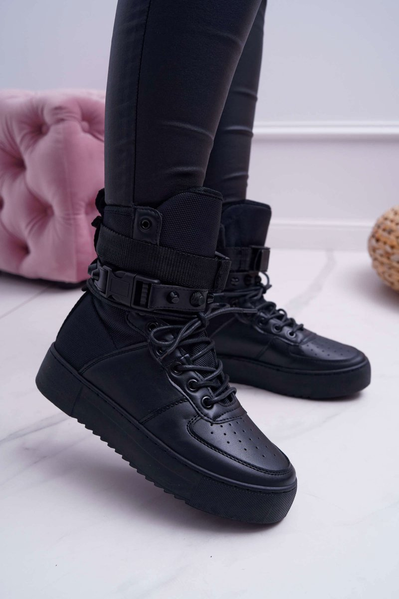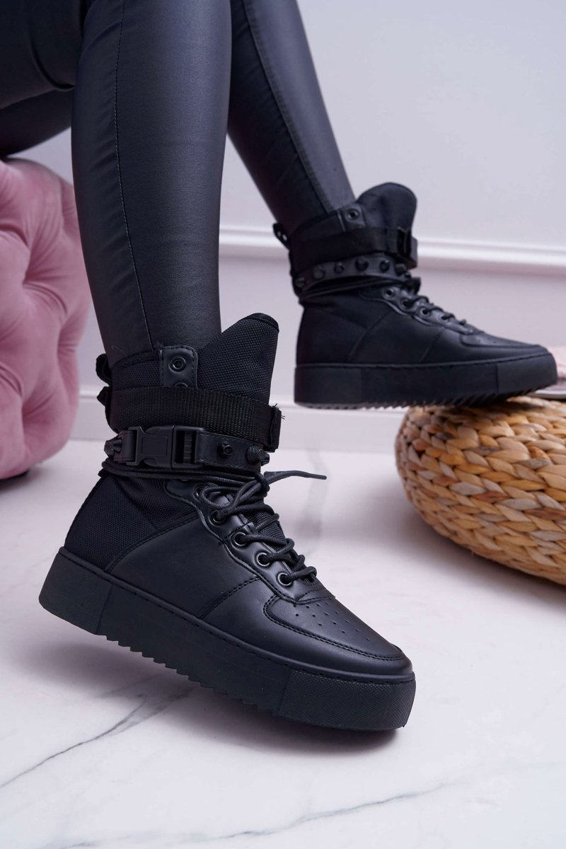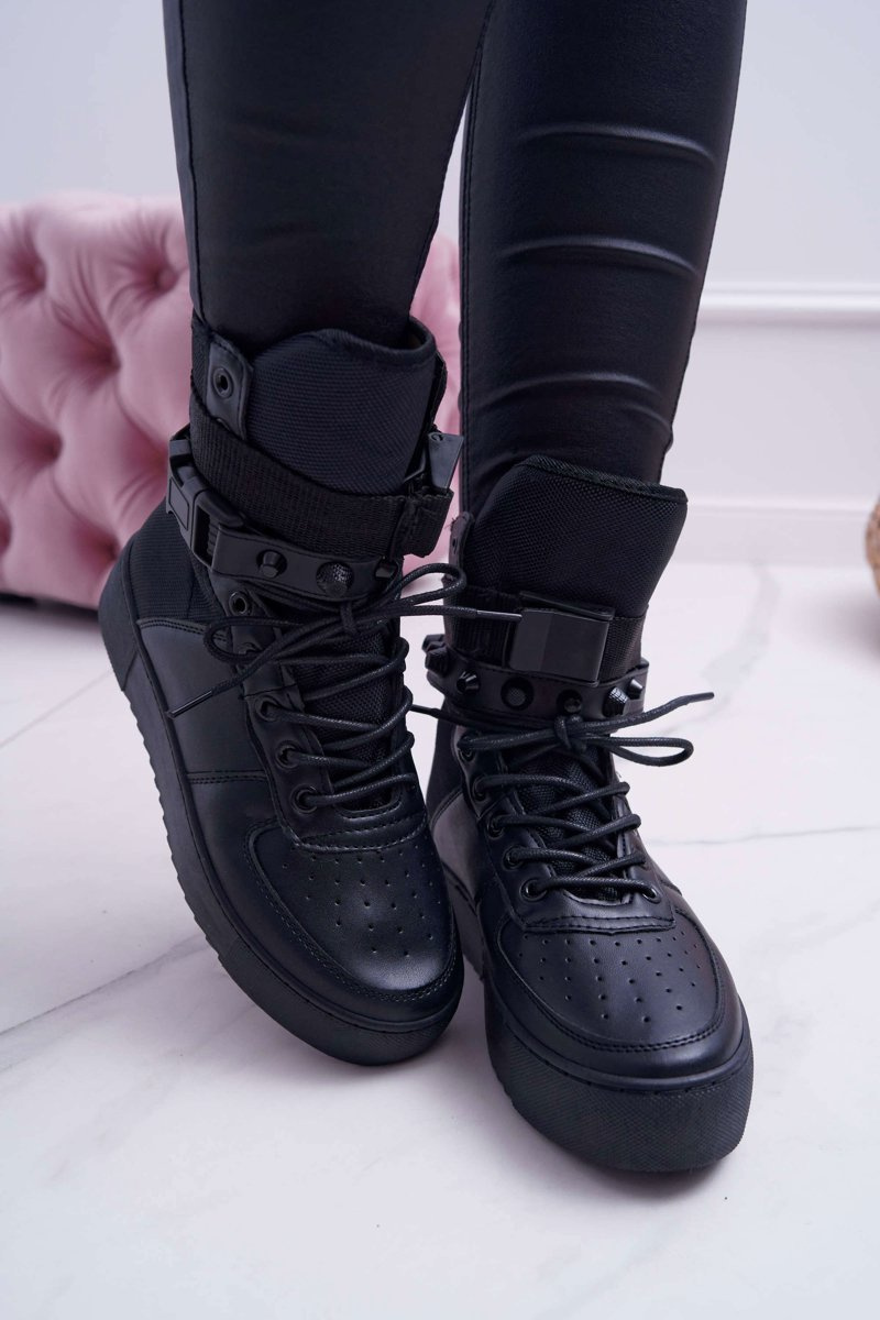 Dámske športové topánky s vysokým zvrškom. Majú dva pruhy, ktoré zabalia kocku (môžu sa odstrániť). Vyrobené z ekologickej kože.