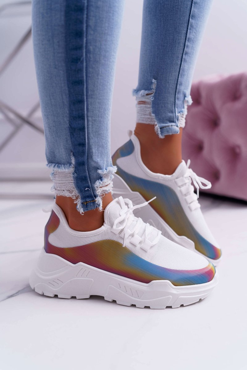Dámske športové topánky hrubé holografické jediné biele večierky hore