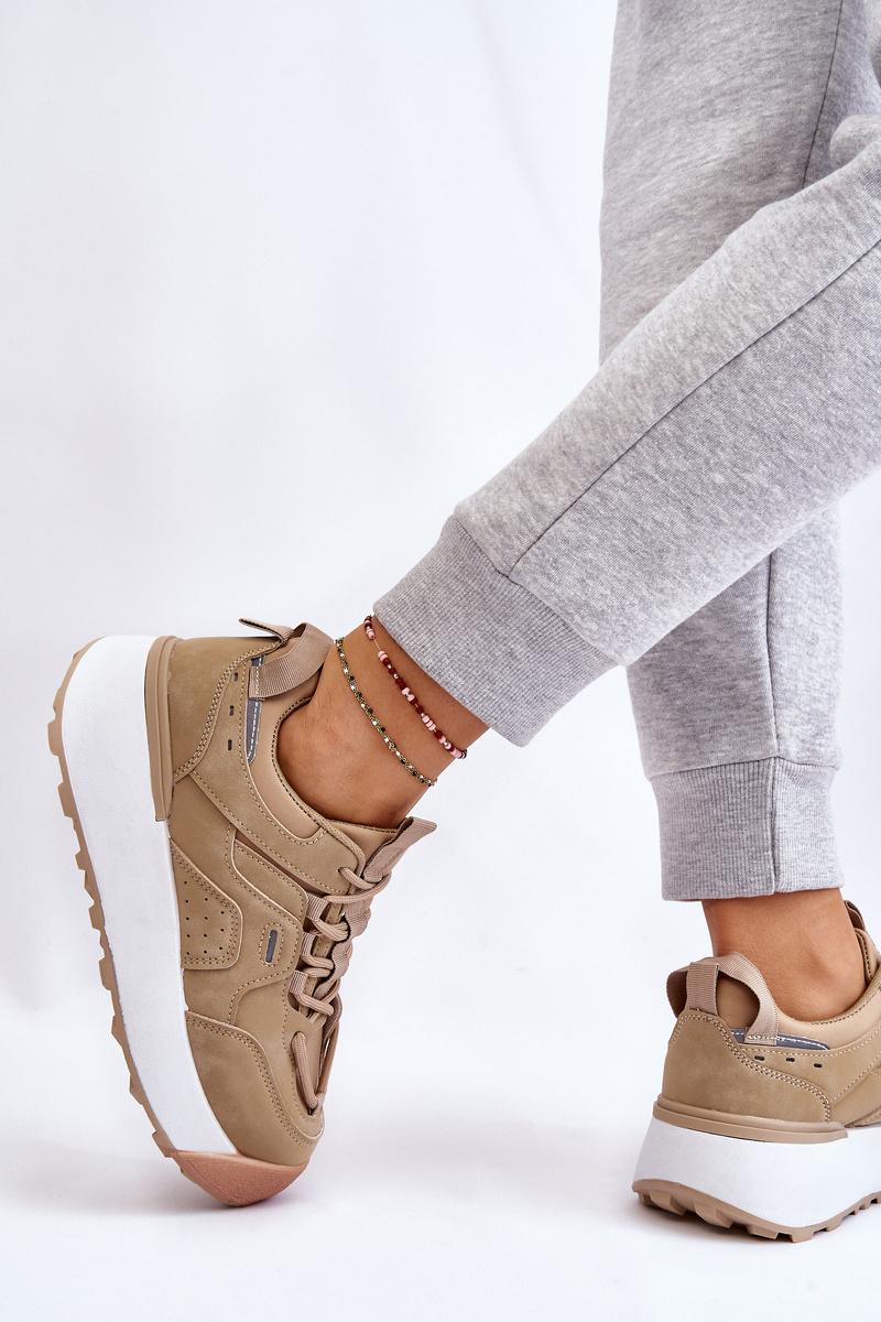 Skvelé, dámske športové topánky boli zabudované na masívnej platforme, ktorá jemne zdvíha vašu postavu. Tento model má klasické šnurovanie. Okrem toho je päta stuhnutá a zadná časť hornej je reflexným prvkom. Vložka do týchto topánok je materiál a zameniteľná. Pri výbere veľkosti postupujte podľa tabuľky veľkosti. /p>