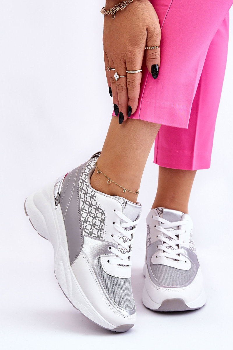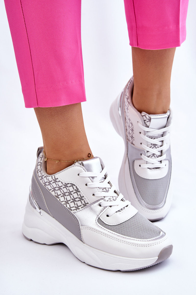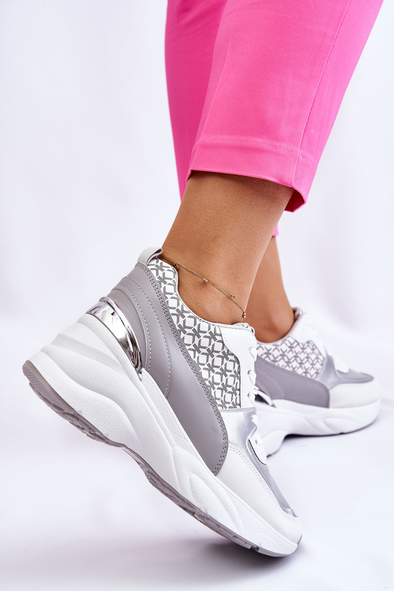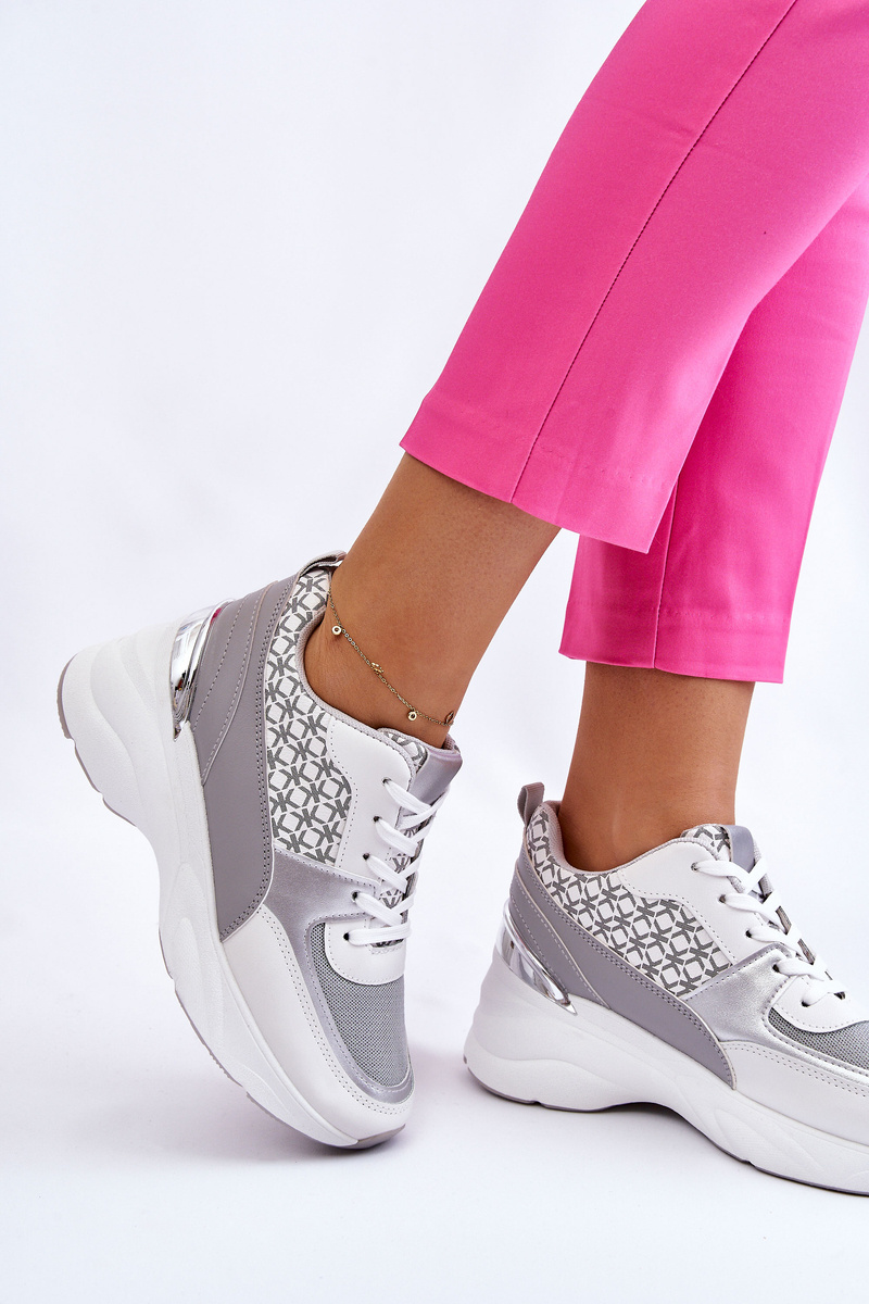 Dámske športové topánky na platforme biele a sivé Ferrina