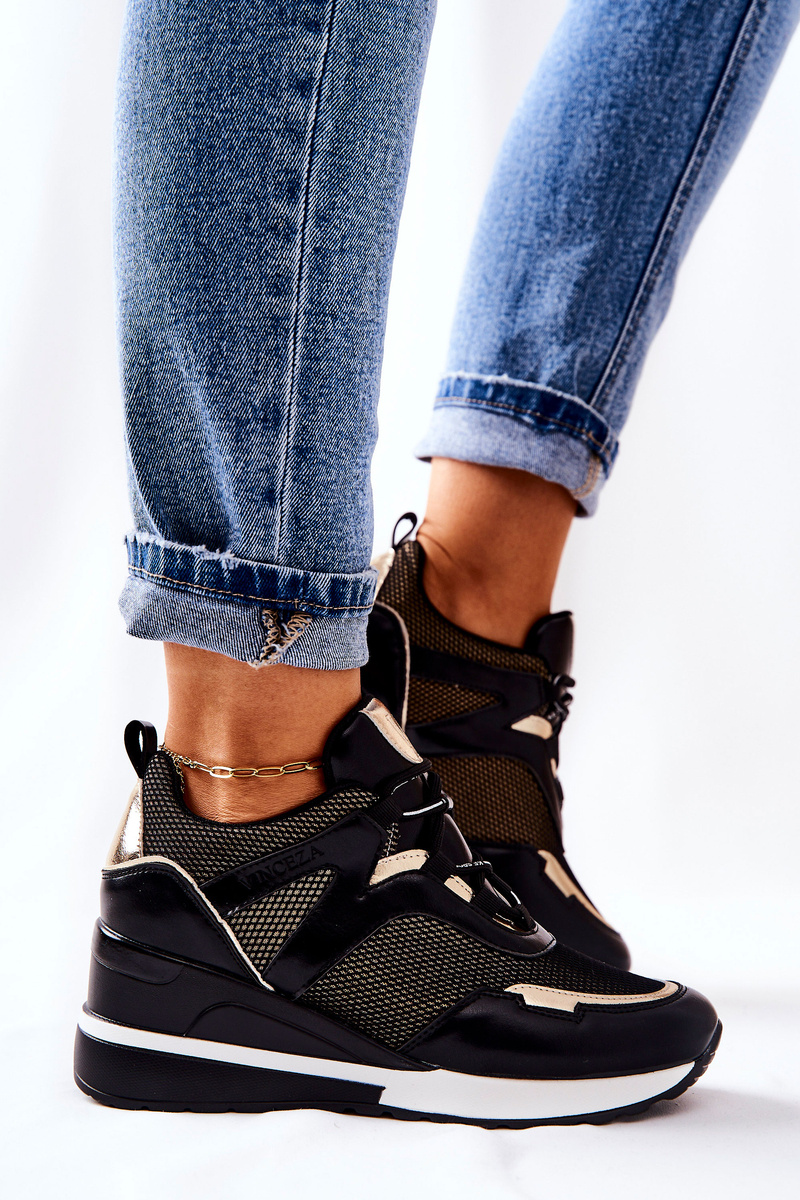 Módne športové topánky na skrytom klinoch. Majú tiež platformu. Vložka je vyrobená z ekologickej kože. Na vrchu sú topánky vyrobené z lesklého materiálu. Majú väzbu, ktorá vám umožní správne zmestiť nohu. Nenechajte si ujsť takúto príležitosť a kúpte si ju ešte dnes! Pri výbere veľkosti postupujte podľa tabuľky veľkosti.