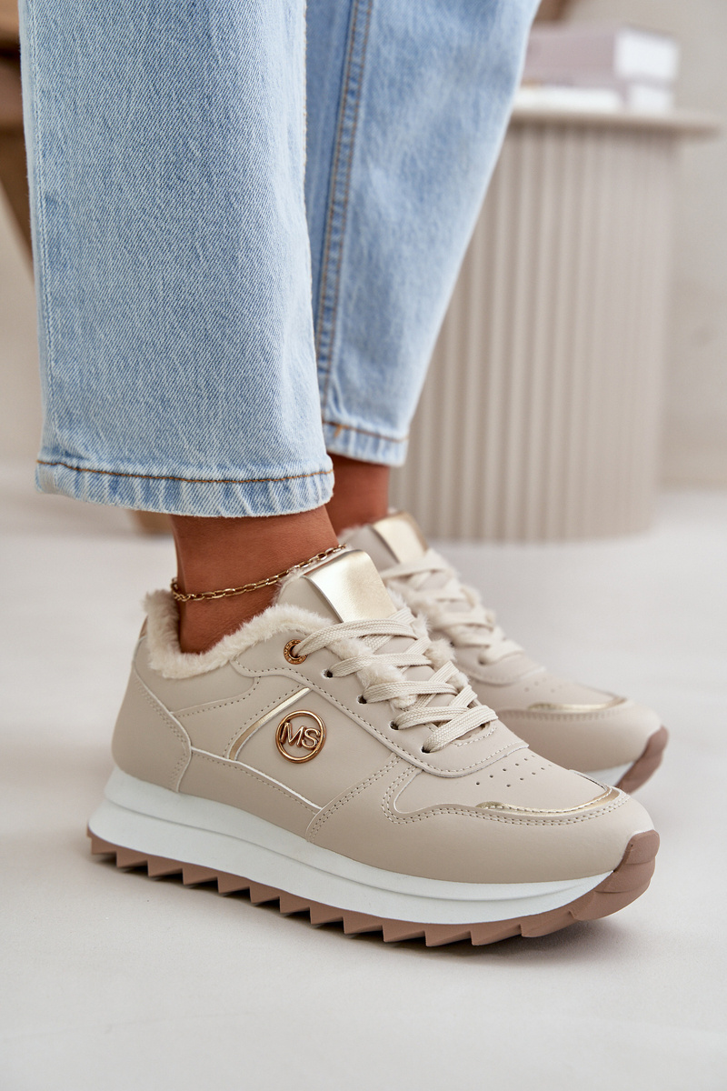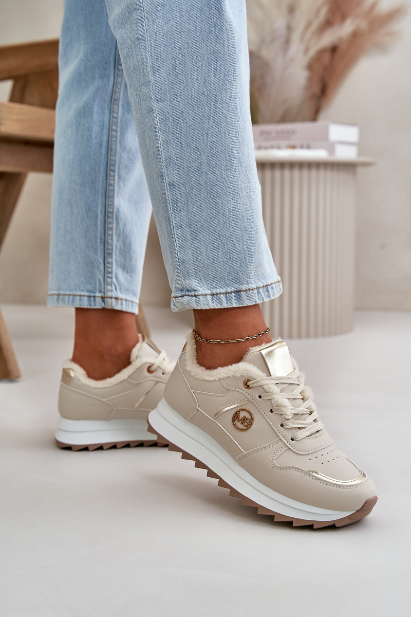 Dámske Športové Topánky Zateplené Kožušinou Na Platforme Svetlo Béžové Lerisas