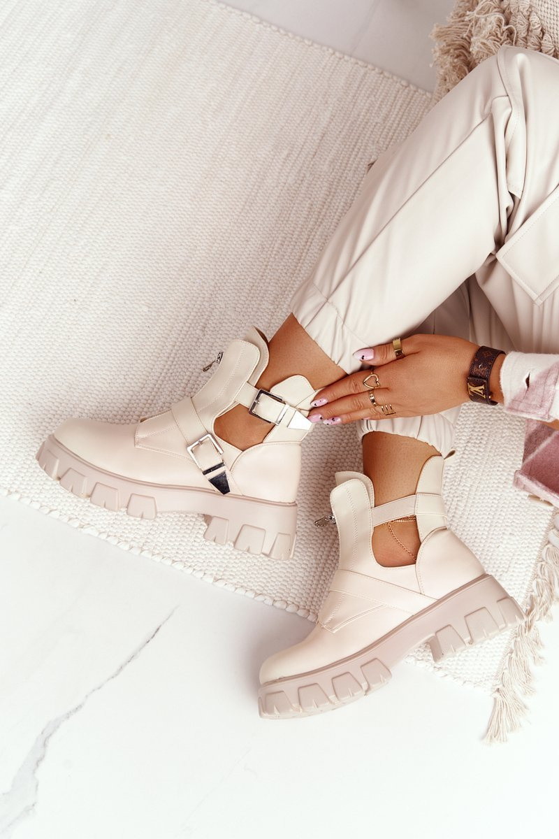 Unikátne topánky s výrezmi a prackami na masívnej plošine. Pracovníci sú vyrobené z ekologickej kože. Topánky sa dokonale vyrovnávajú glam rock alebo grunge štylizácie. Pri výbere veľkosti navrhnite tabuľku veľkosti.
