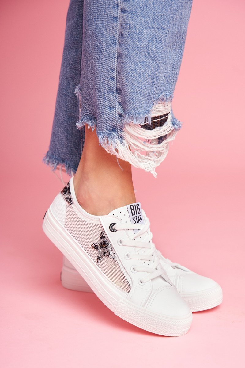 Nízke, klasické, nadčasové čipky -upové tenisky vyrobené z materiálu sieťoviny. Podrážna podrážka, zdobená logom Big Star. Pohodlné tenisky sú ideálne na to, aby chodili do práce aj počas výletu z mesta. Klasický vzor v kombinácii s bezprecedentným pohodlím je skvelý recept na praktické a originálne topánky. Pri výbere veľkosti postupujte podľa tabuľky veľkosti.