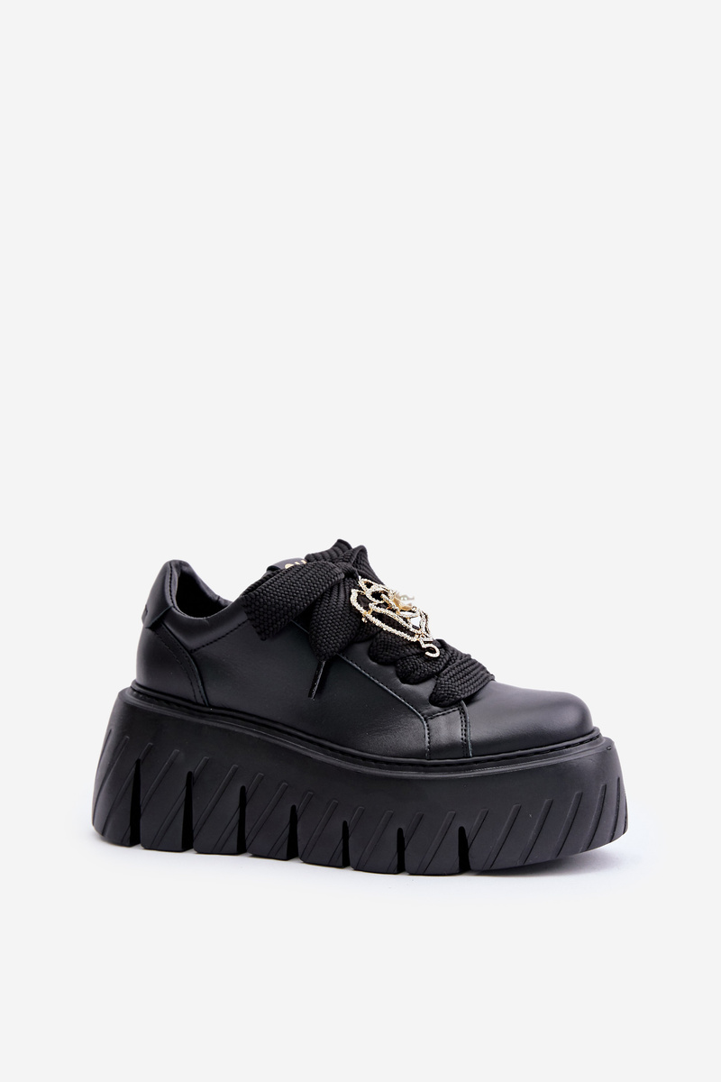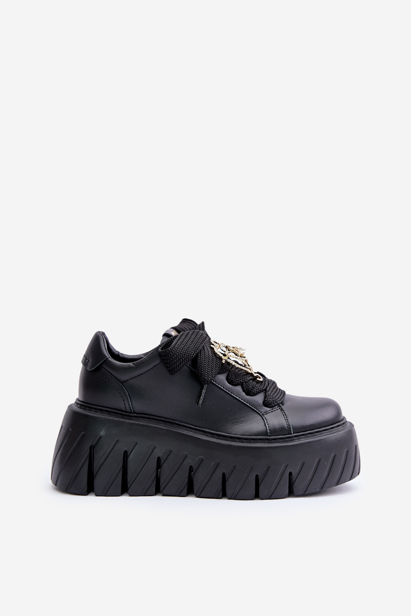Dámske Tenisky Na Masívnej Podrážke So Zlatou Ozdobou CheBello 4530 Čierne