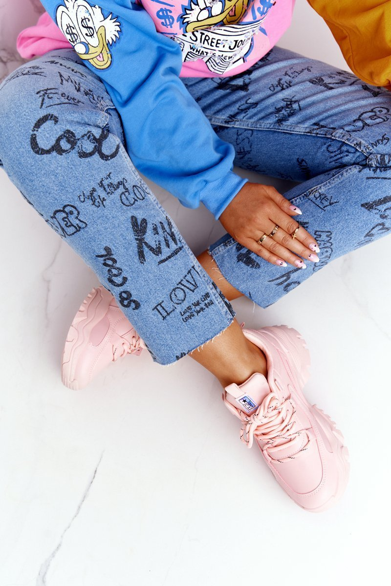 Dámske tenisky na masívnom jedinom ružovom smiechu