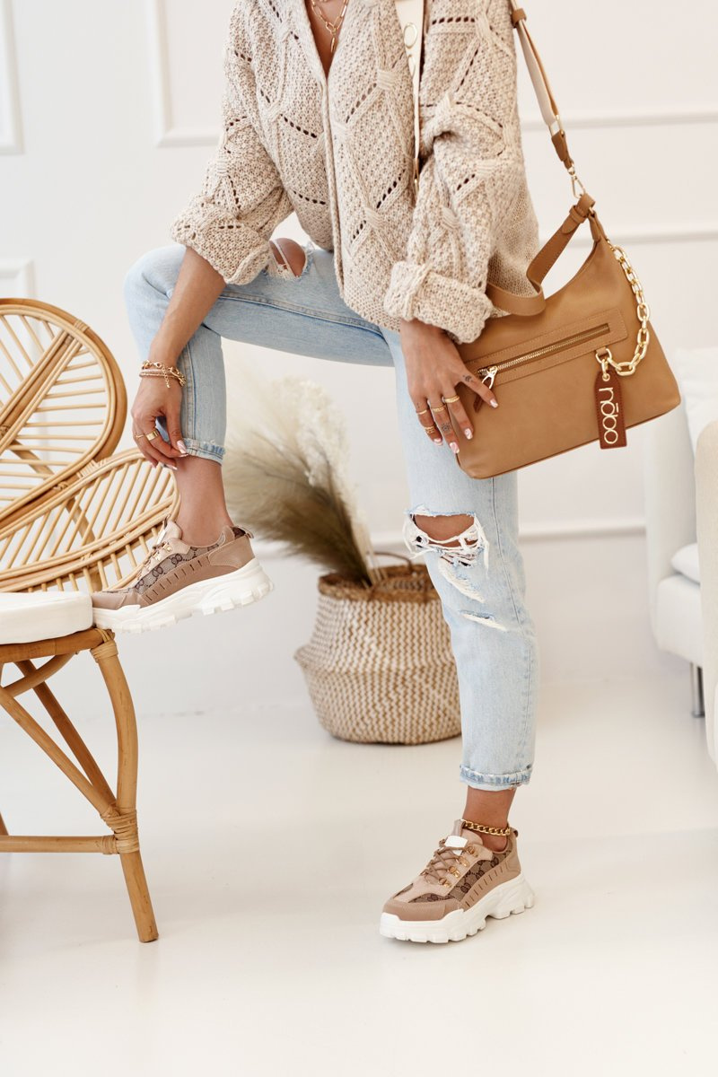 Dámske tenisky na masívnej podrážke. Topánky sú vyrobené výlučne z ekologickej kože. Vložka z mäkkého materiálu poskytne pohodlie a podrážka niekoľkých centimetrov zdvihne vašu postavu. Módny strih bude dopĺňať veľa štyidov. Nezabudnite skontrolovať celú našu zbierku športových topánok. Pri výbere veľkosti postupujte podľa tabuľky veľkosti.