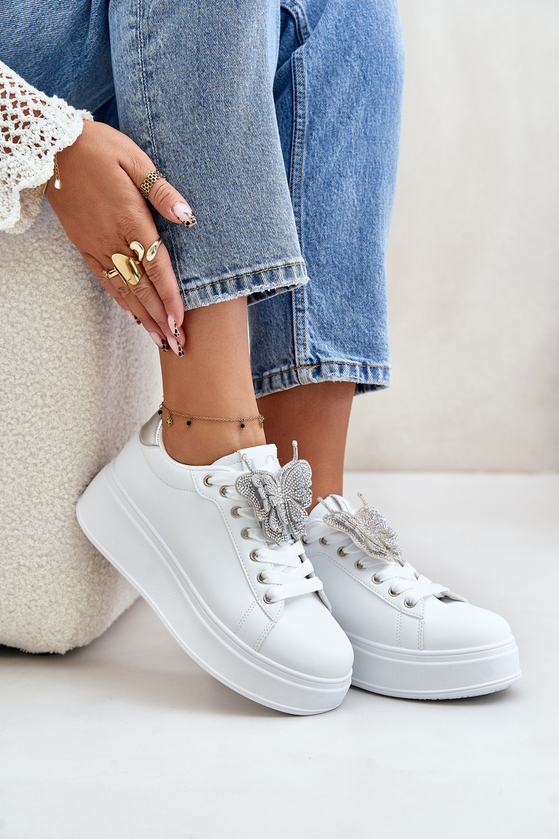 Dámske tenisky na platforme s motýľom bielo-strieborné Naritevia