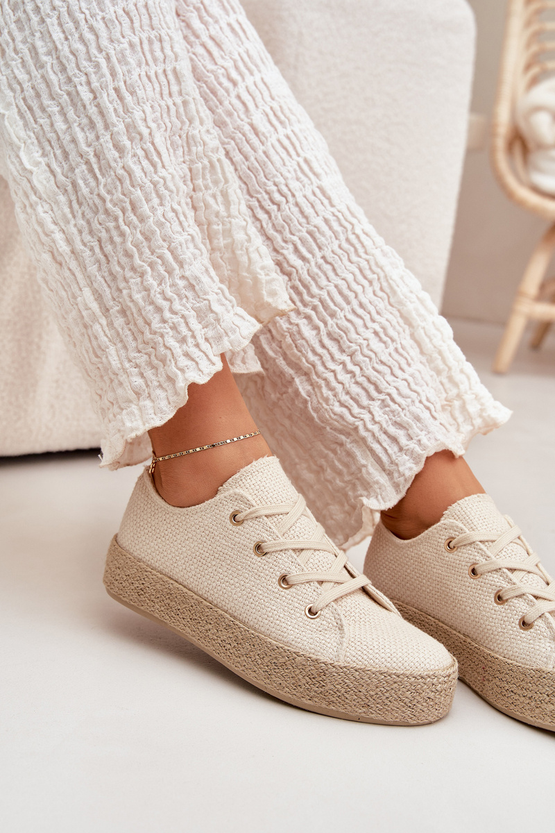 Dámske Tenisky Na Platforme S Pleteninou Béžové Princa