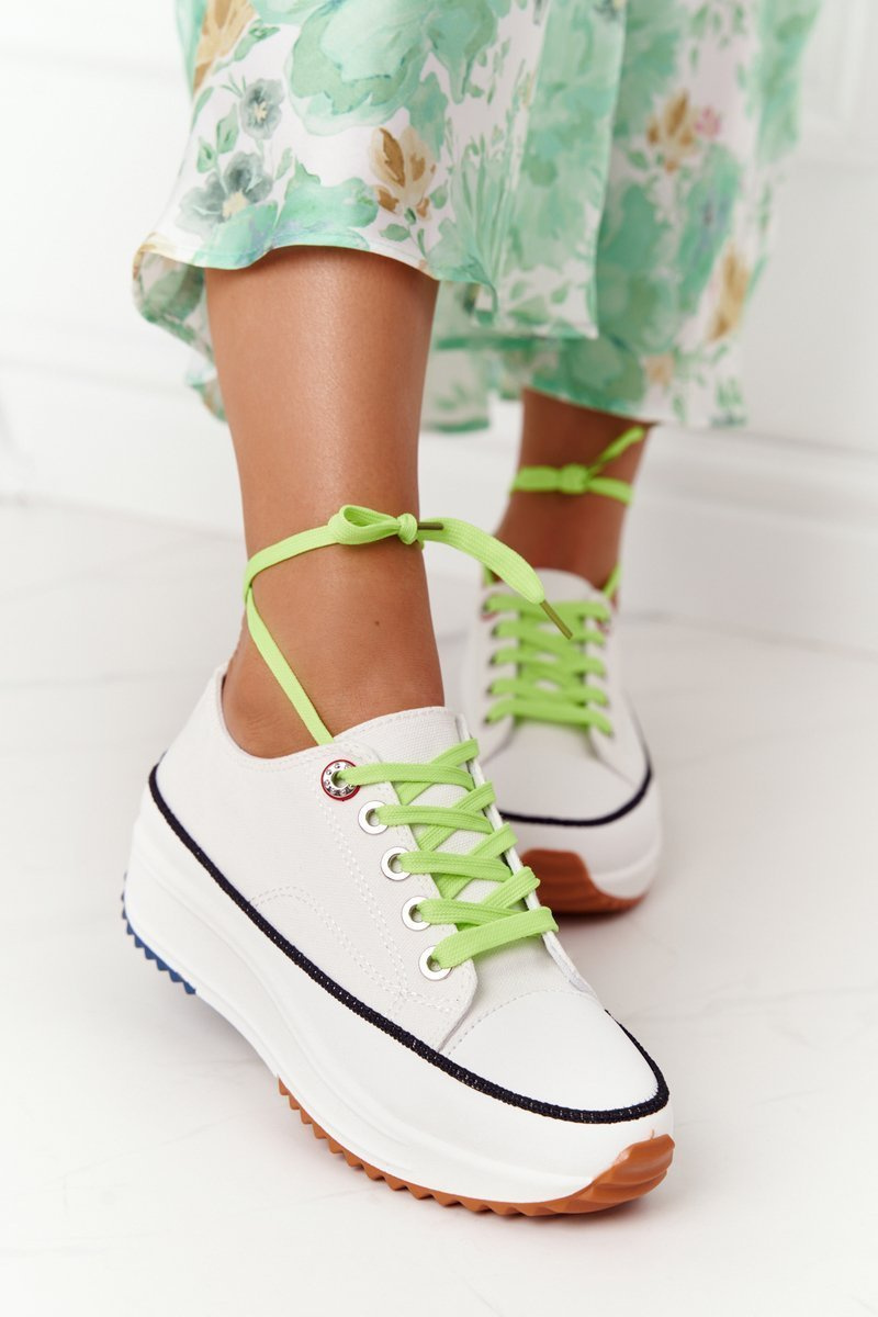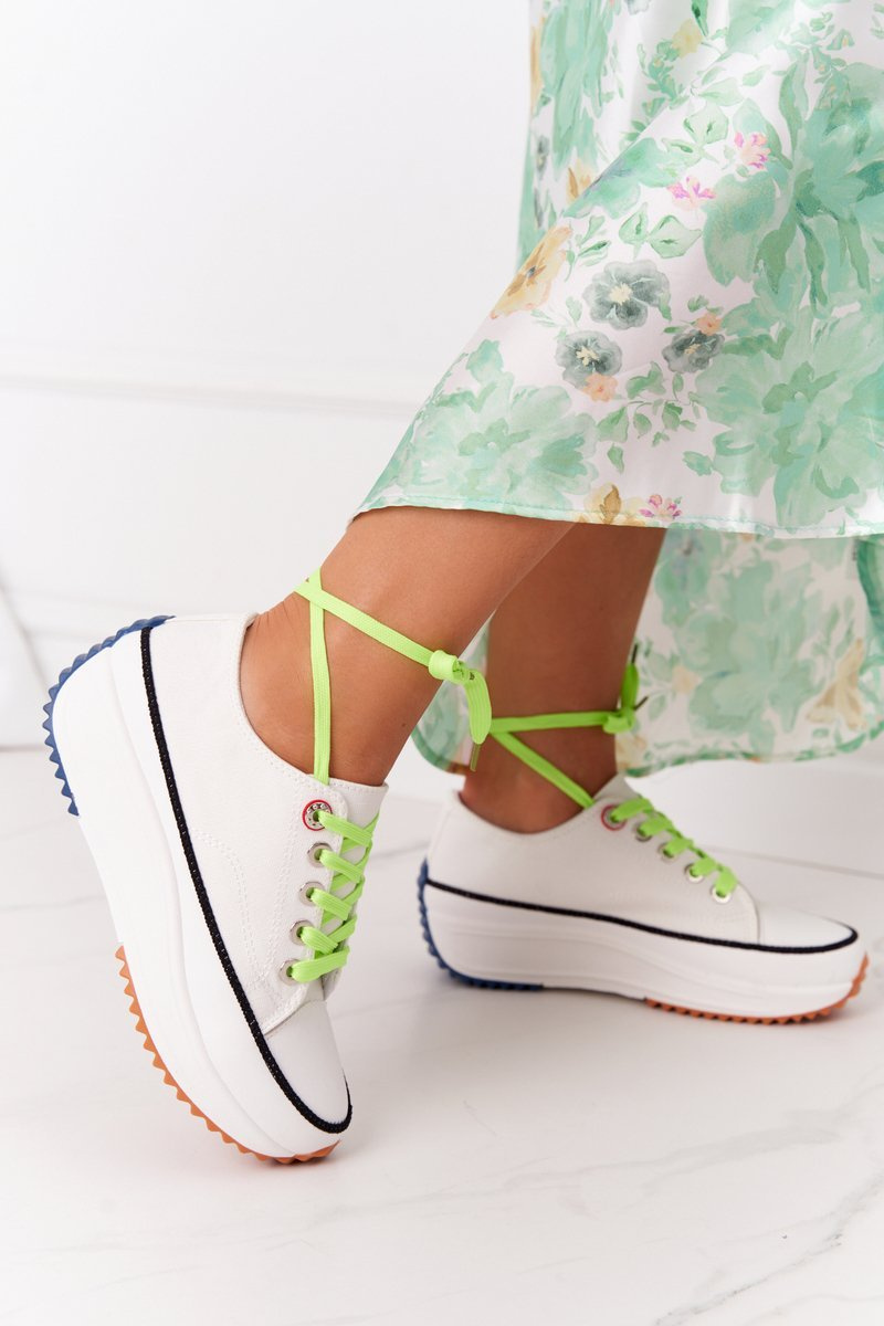 Unikátne tenisky na platforme. Topánky sa dobre prispôsobujú tvaru chodidla, majú profilovanú vložku ekologickej kože a podrážku nekrip. Nezabudnite sa pozrieť na našu kolekciu tenisiek! tenisky majú dva páry šnúr - zelené a biele. Pri výbere veľkosti navrhnite tabuľku veľkosti.
