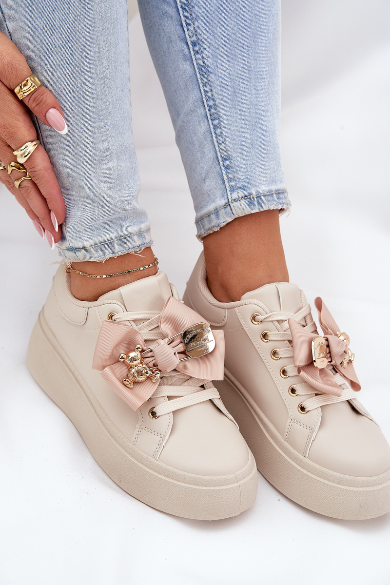 Dámske Tenisky S Mašľou A Brošňou S Medvedíkom Béžové Leathria