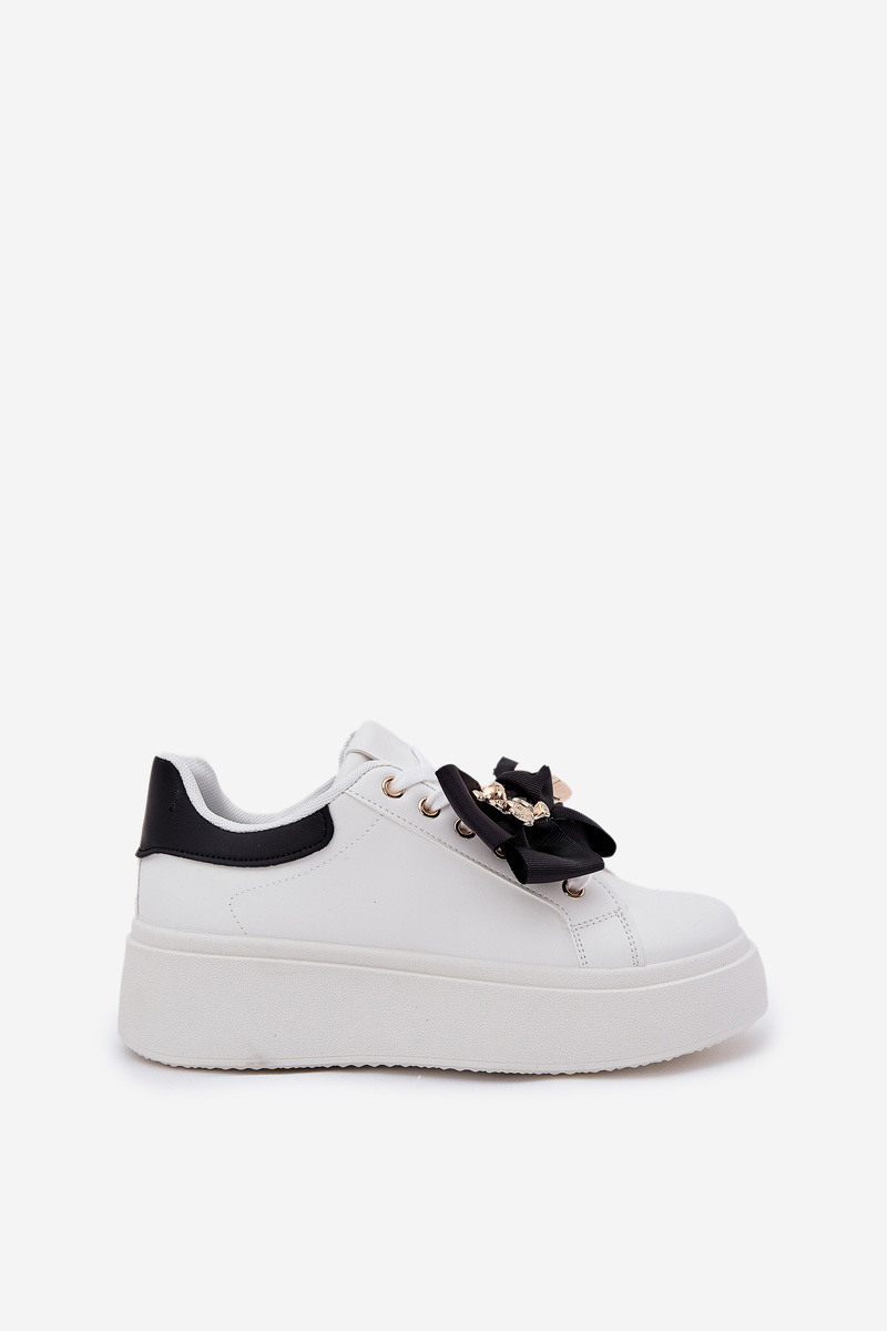 Dámske Tenisky S Mašľou A Brošňou S Medveďom Biela-Čierna Leathria