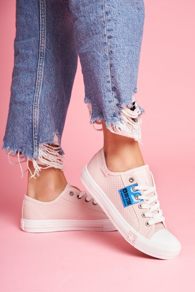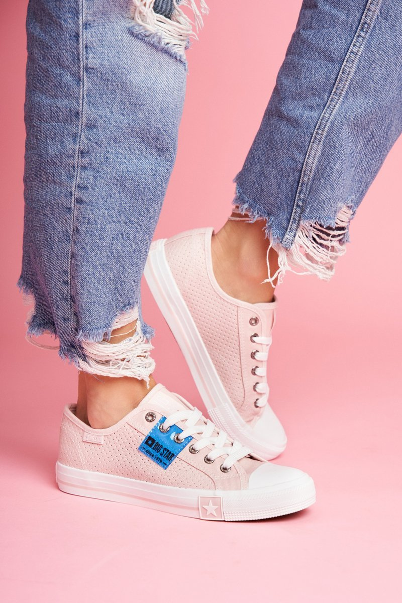 Dámske tenisky z populárnej značky Big Star. Obuv vyrobená z textilného materiálu. Vložka materiálu. Zdobenie vo forme loga výrobcu na hornej časti. Veľká hviezda na podrážke. Tenisky sú hitom, každú sezónu. Nemôžu chýbať v šatníku každej ženy. Pri výbere veľkosti postupujte podľa tabuľky veľkosti.