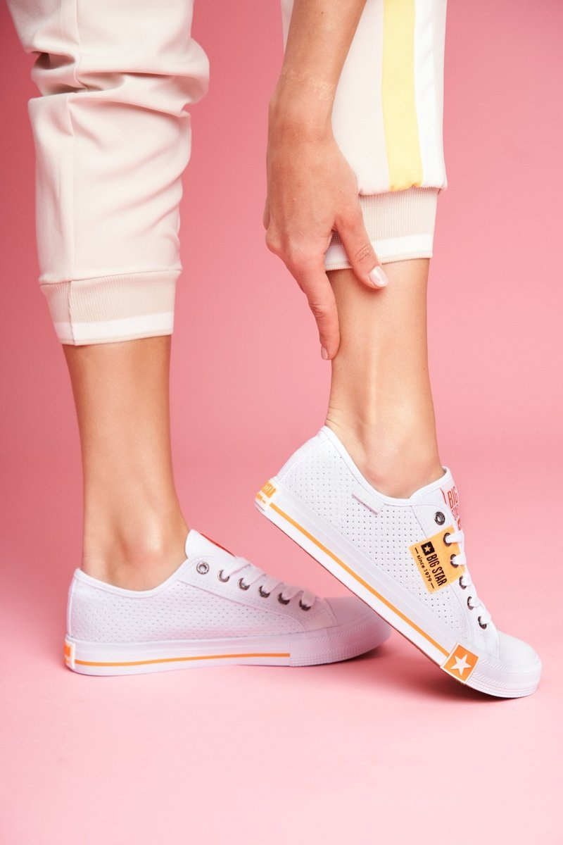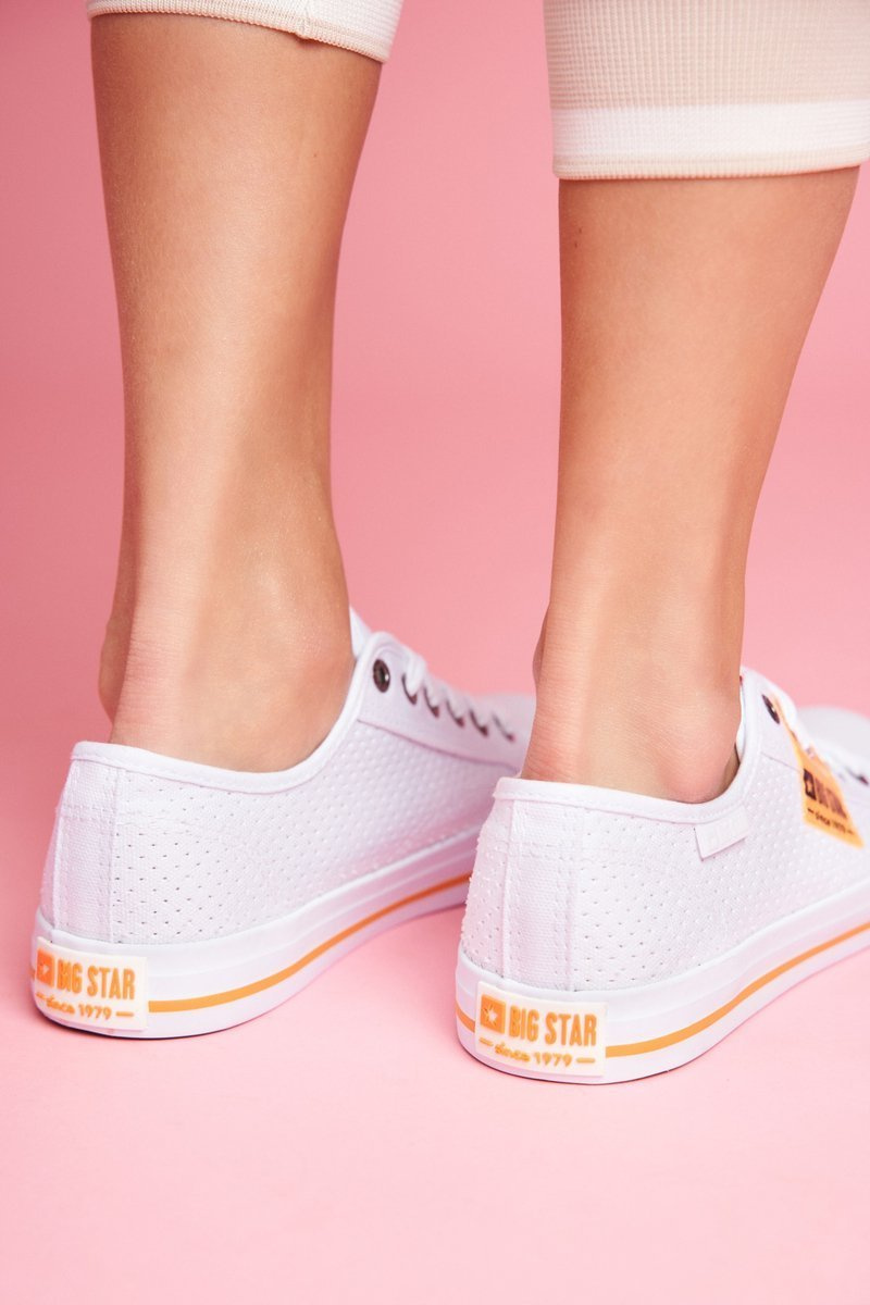 Dámske tenisky z populárnej značky Big Star. Obuv vyrobená z textilného materiálu. Vložka materiálu. Zdobenie vo forme loga výrobcu na hornej časti. Veľká hviezda na podrážke. Tenisky sú hitom, každú sezónu. Nemôžu chýbať v šatníku každej ženy. Pri výbere veľkosti postupujte podľa tabuľky veľkosti.